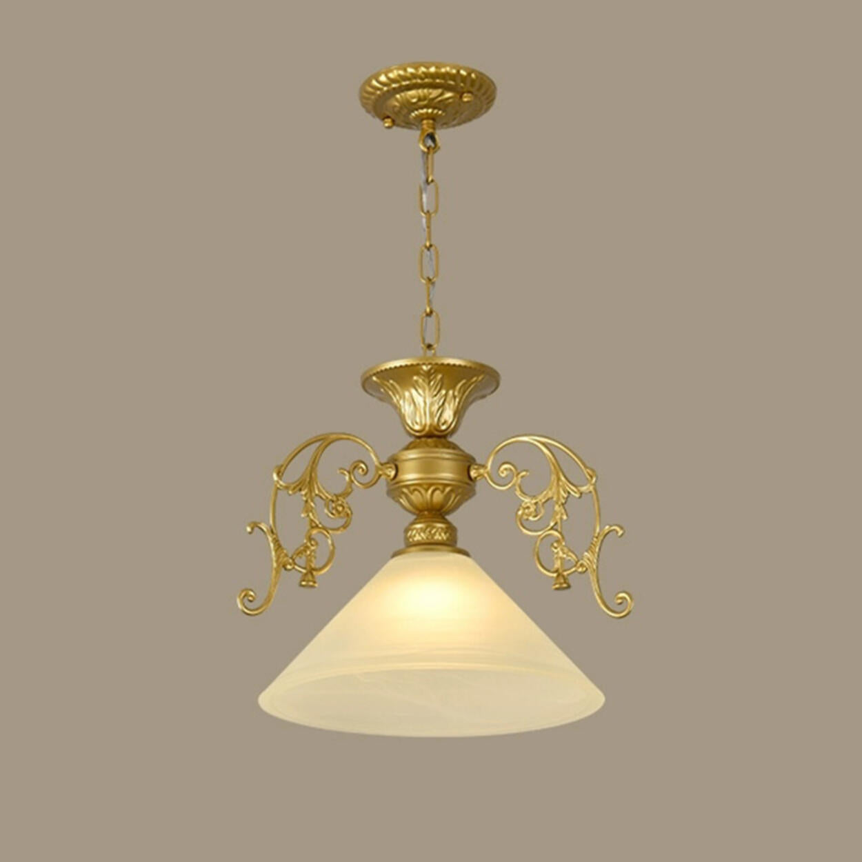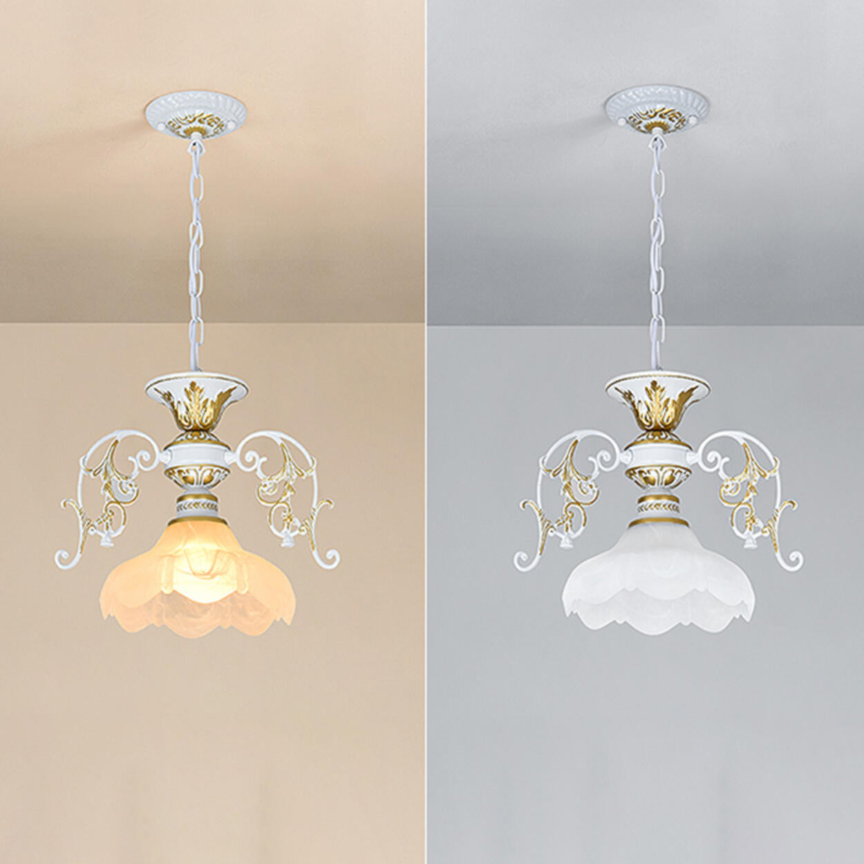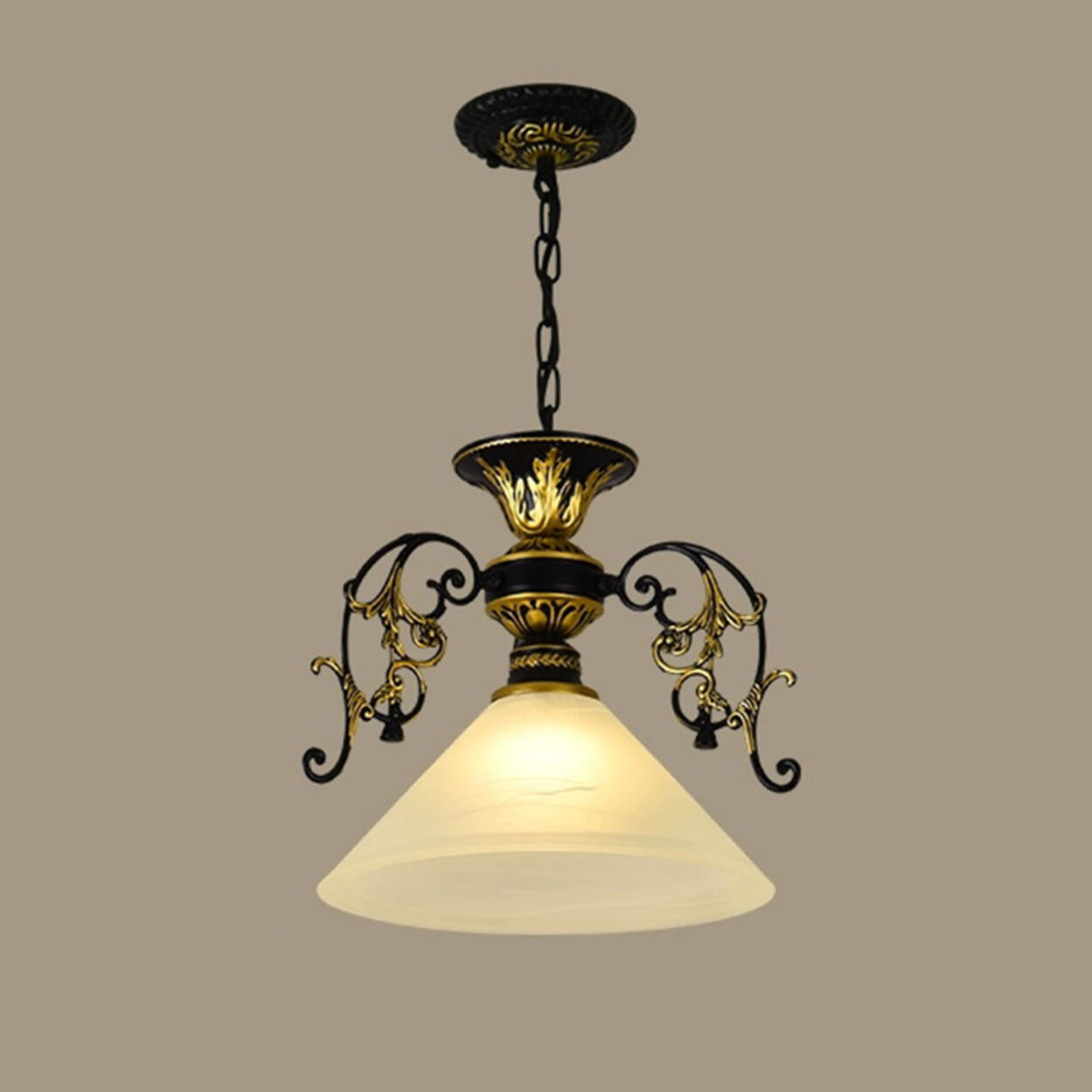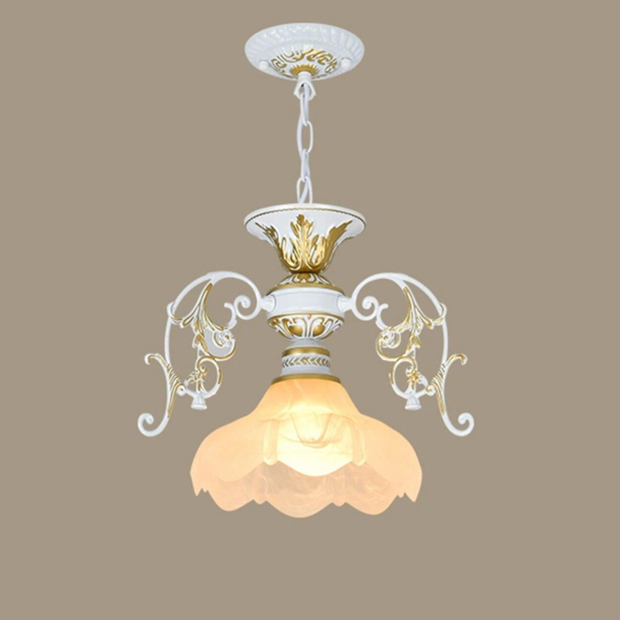 This retro luxury pendant light features black and gold metal carvings with a unique flower-shaped glass lampshade, adding elegance and nobility. This exquisite pendant light can highlight the unique taste and sophistication of your space.