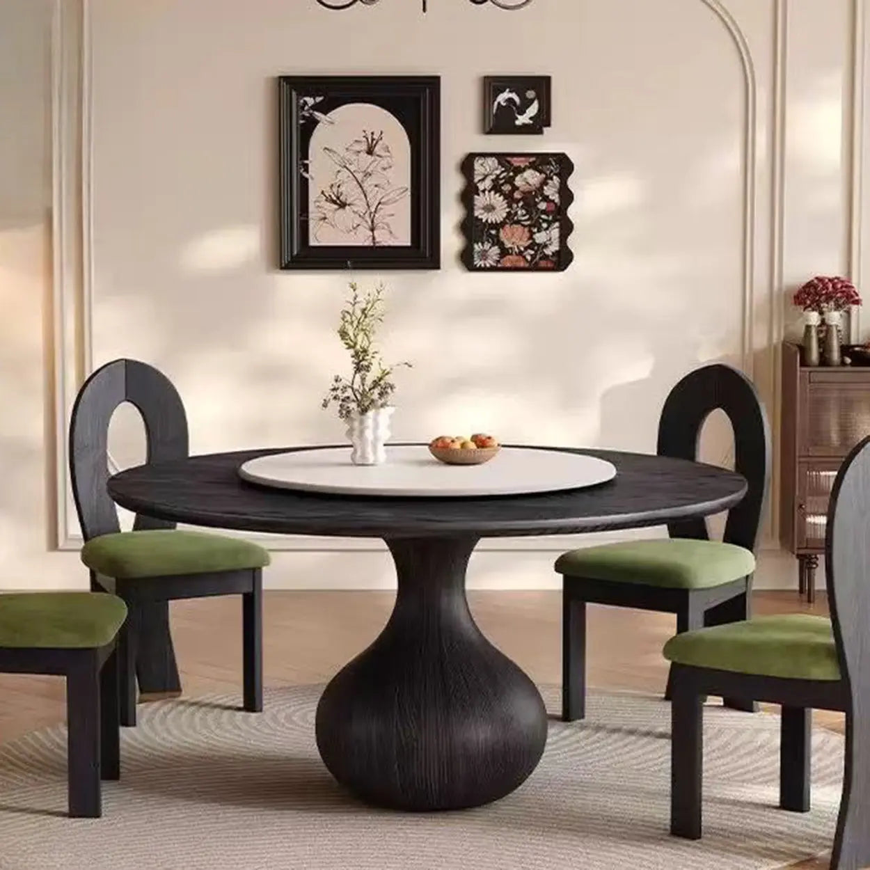 Vintage Black Lazy Susan Round Wood Pedestal Dining Table - 47.2"L x 47.2"W x 29.9"H / Table Only is backordered and will ship as soon as it is back in stock.