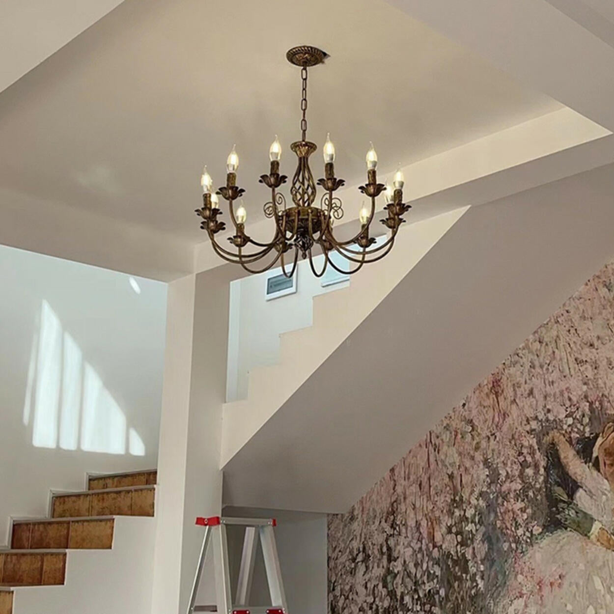 - This vintage chandelier features a candlestick shape with floral decorations, showing a unique charm of classic and elegance.