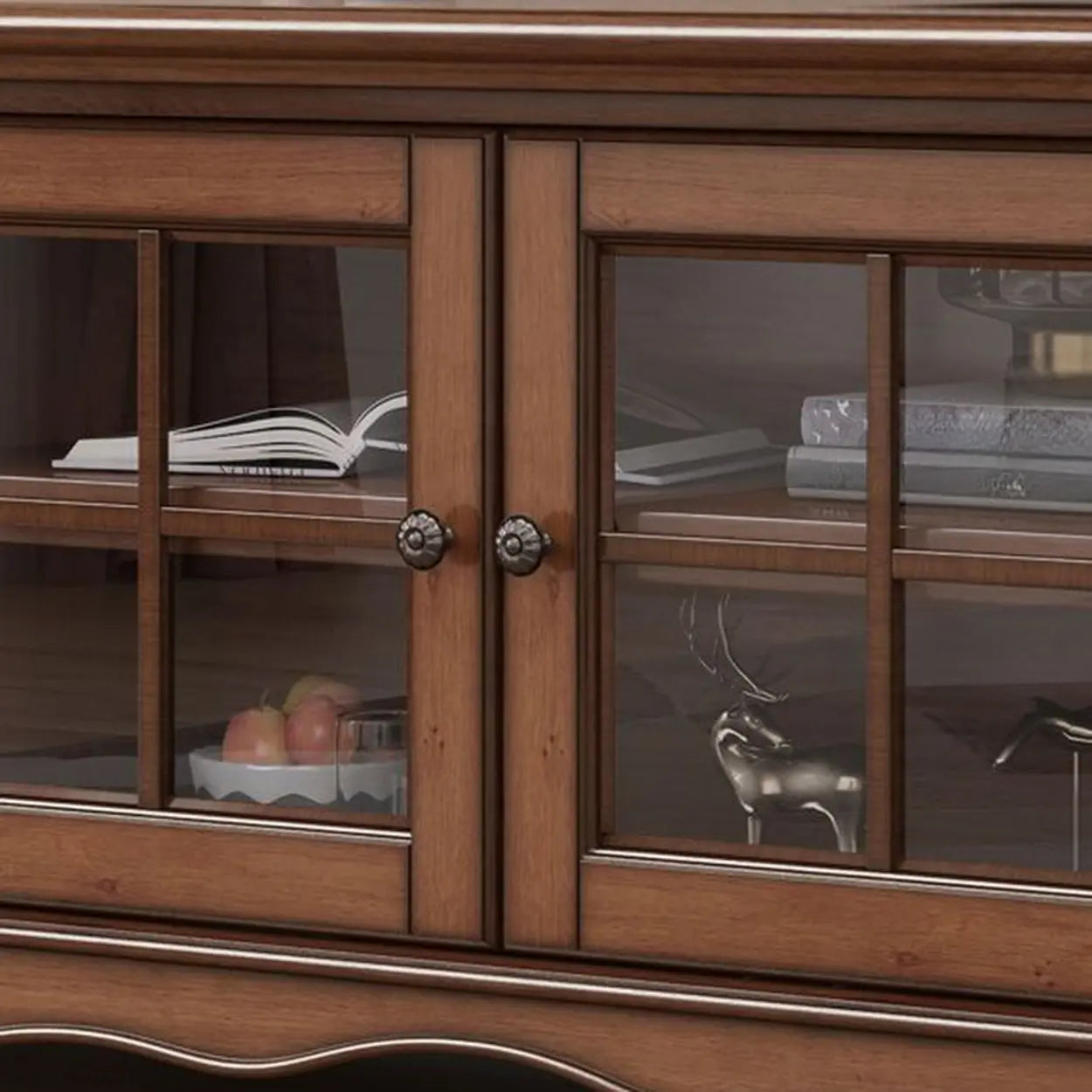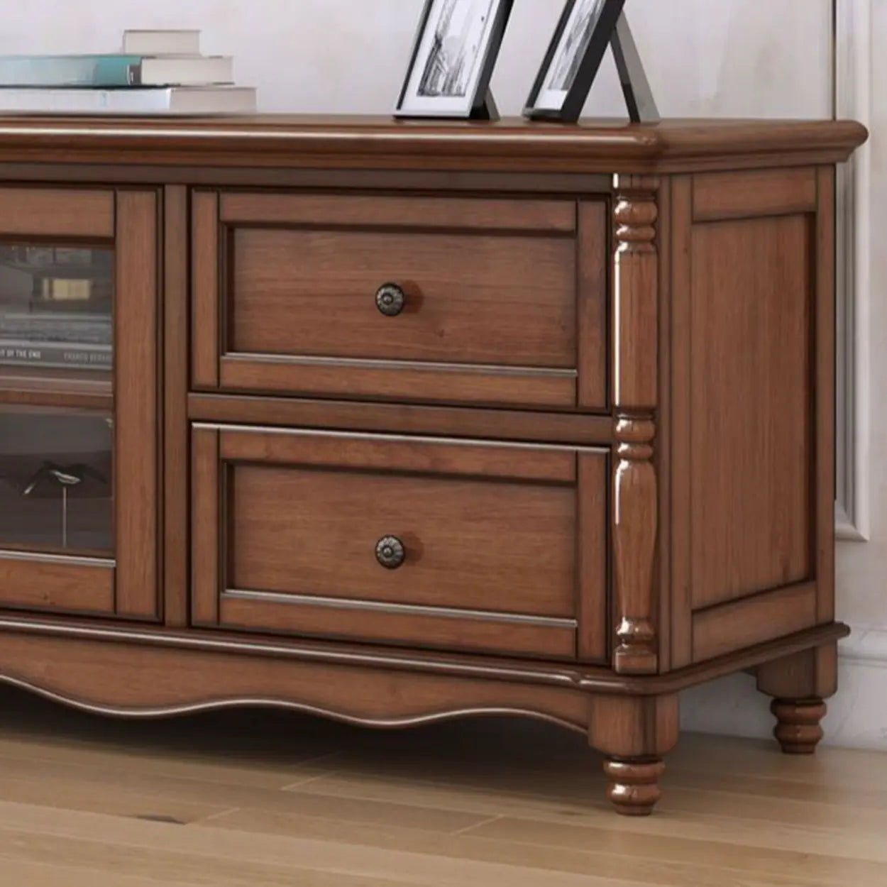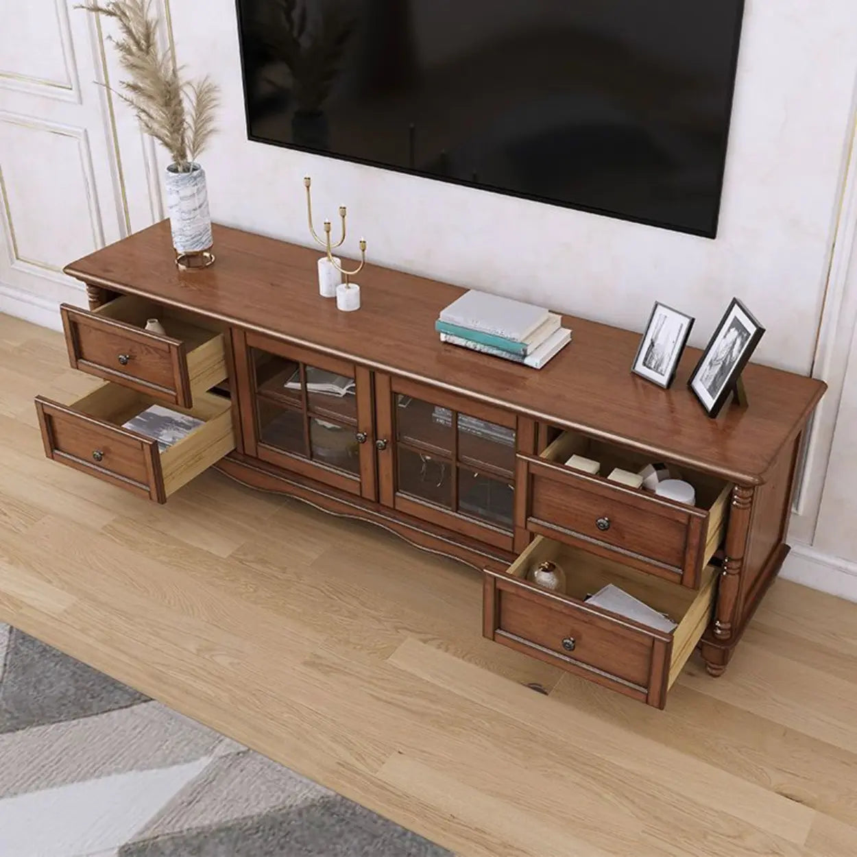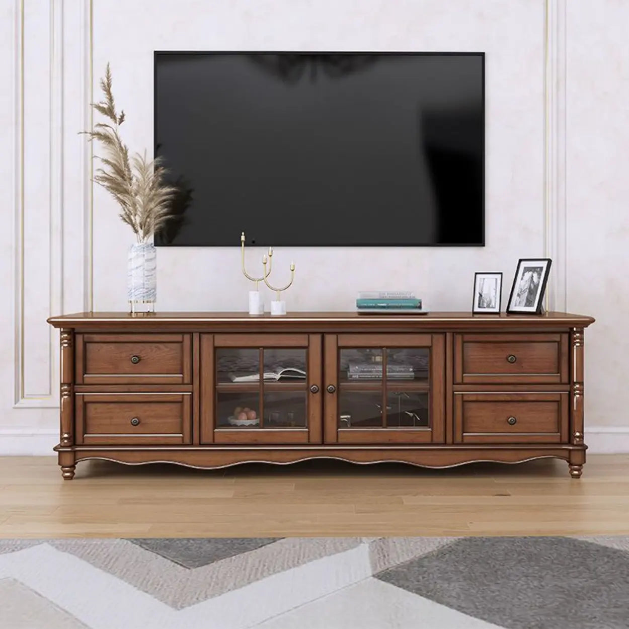 Vintage Brown Wood Rectangle Long TV Stand with Storage