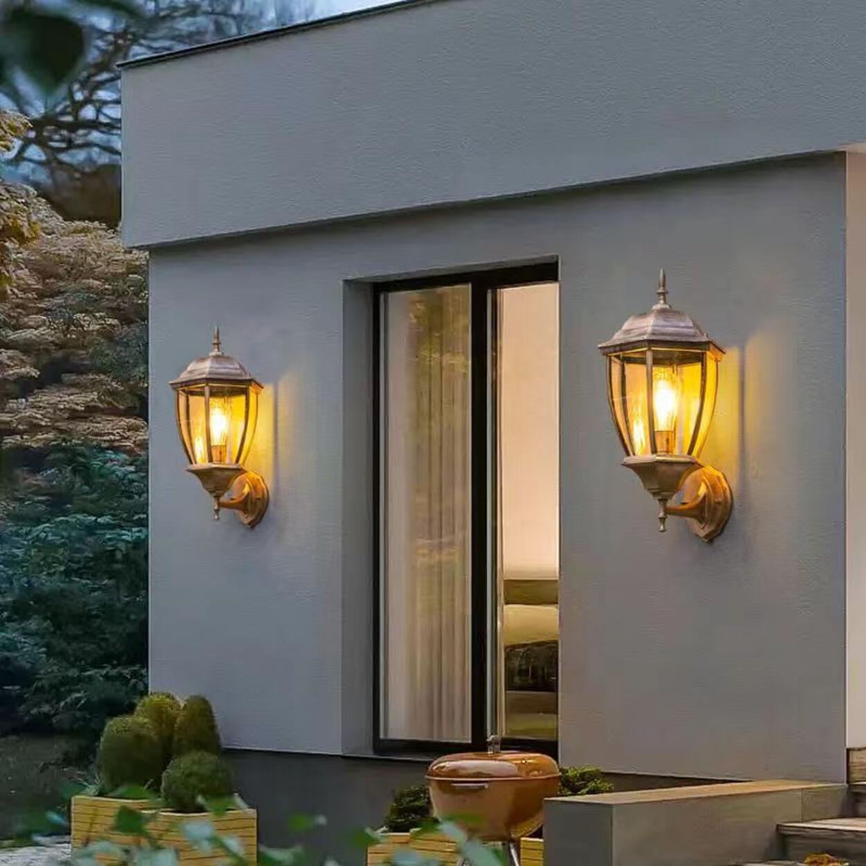Vintage Clear Glass Panels Outdoor Wall Lantern Light