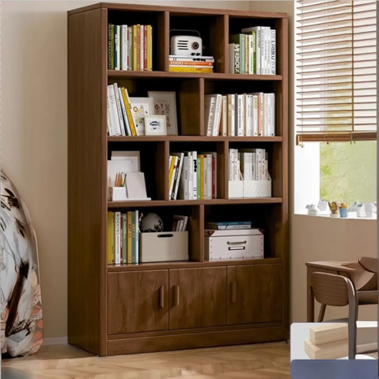 This bookcase perfectly combines classic design with modern functionality, suitable for any home or office environment. Made of high-quality artificial wood, it looks natural and elegant, fully demonstrating high-end quality. Not only does it have a strong storage capacity, but it also adds a touch of elegance and calmness to your space.