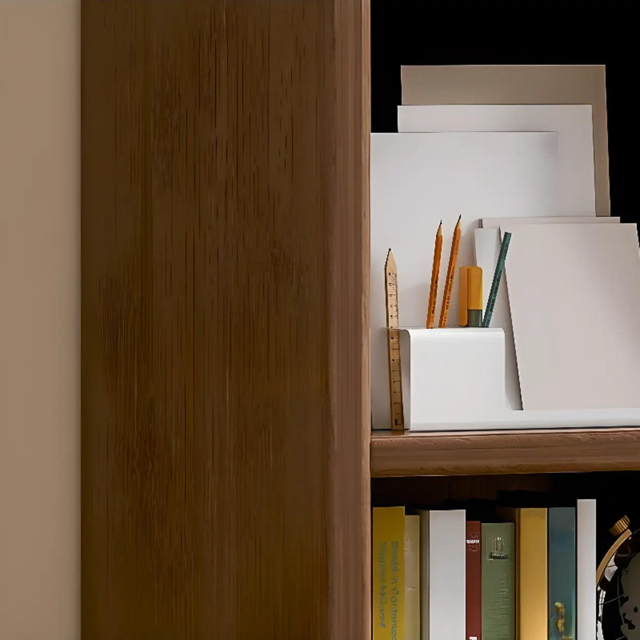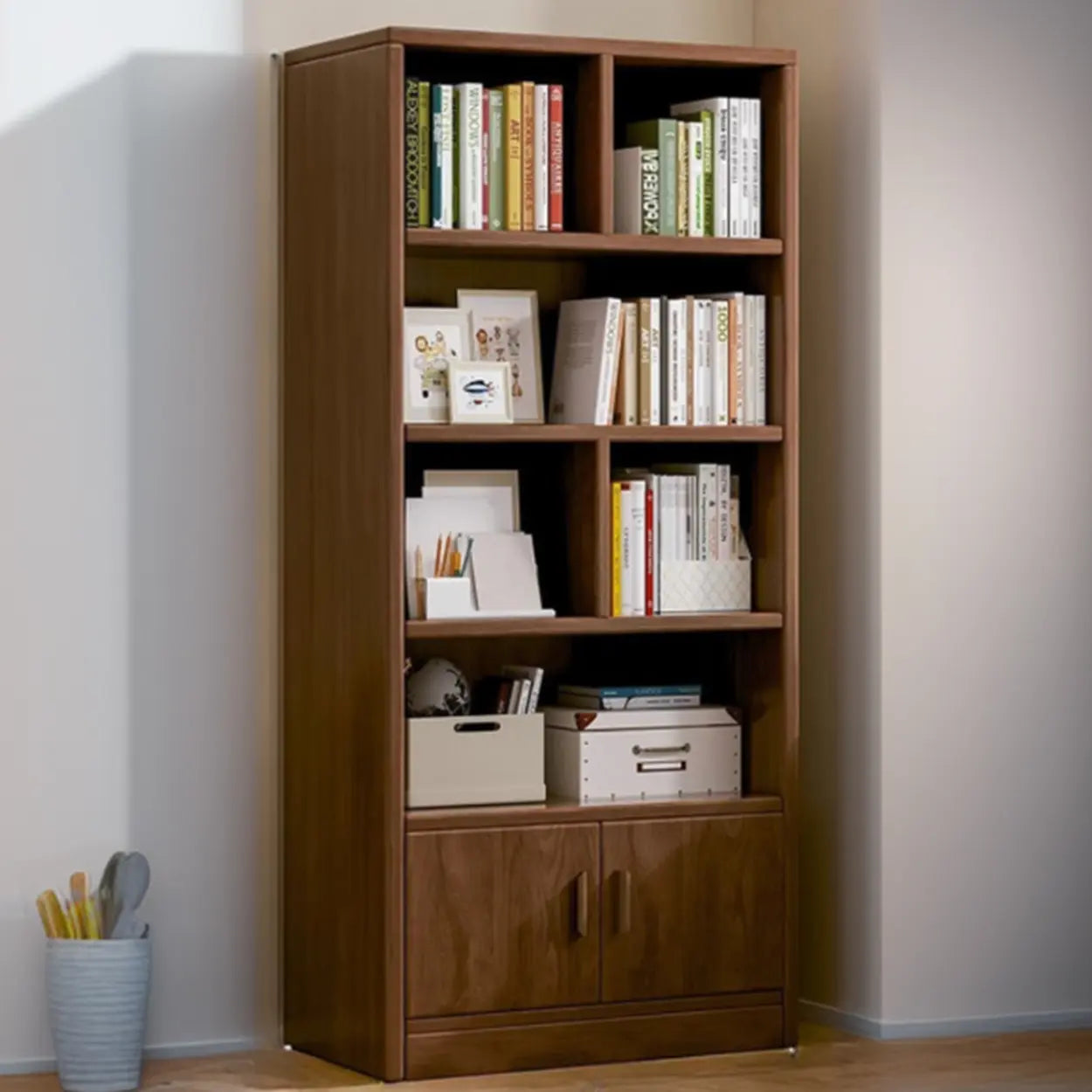 Vintage Closed Vertical Timber Storage Bookcase Brown