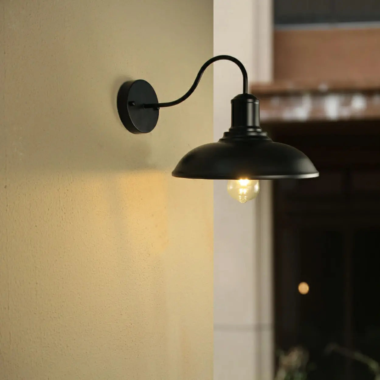 This nostalgic-style curved black metal wall lamp is perfect for outdoor scenes, adding retro charm to your patio and porch. Its unique design and durable material will become the finishing touch of your outdoor space.