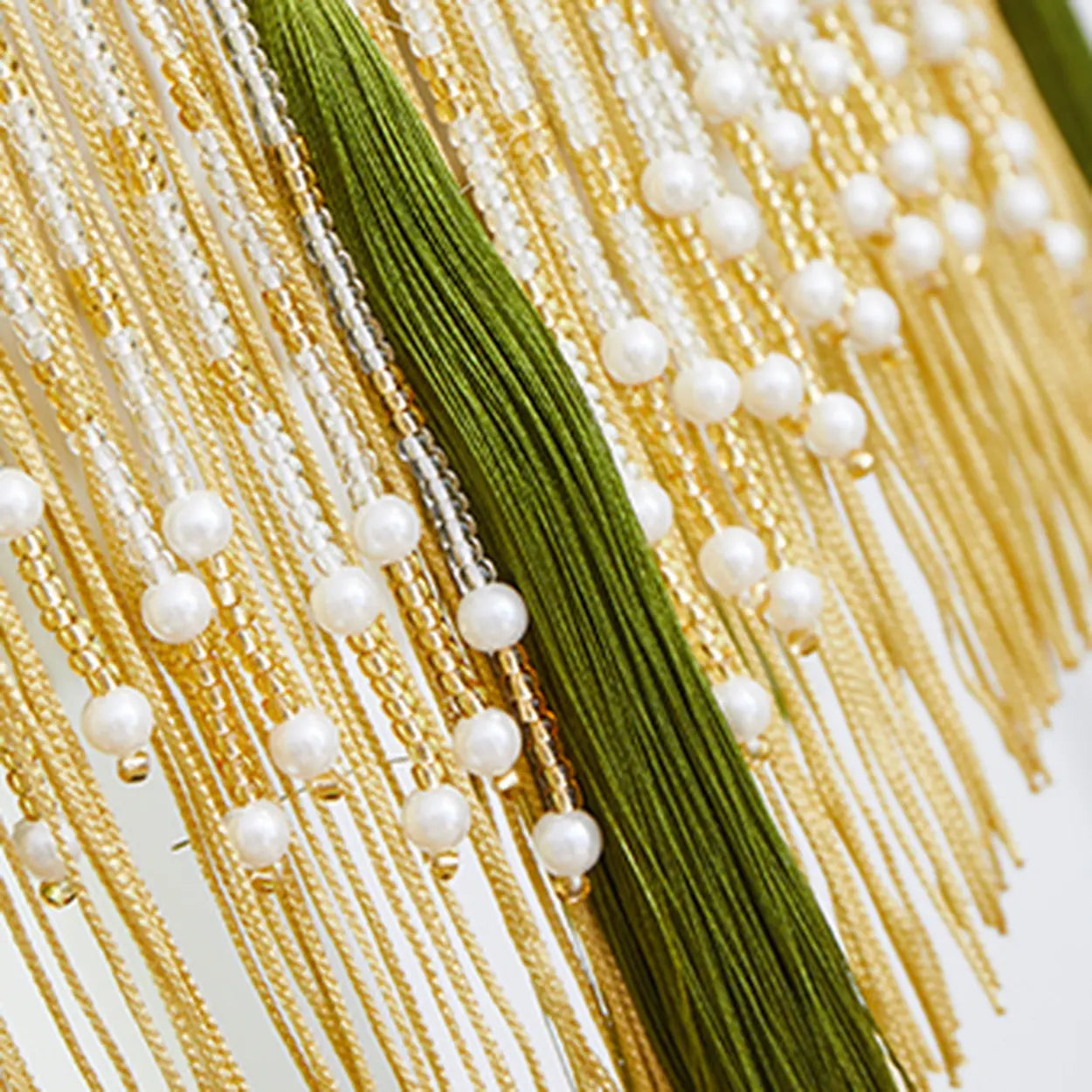 Vintage European Luxury Green Dome Gold Fringe Floor Lamp