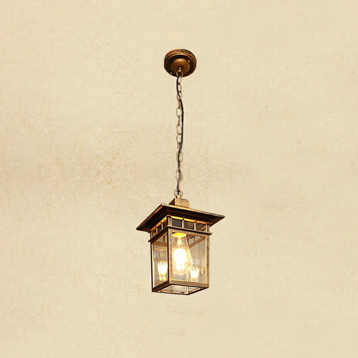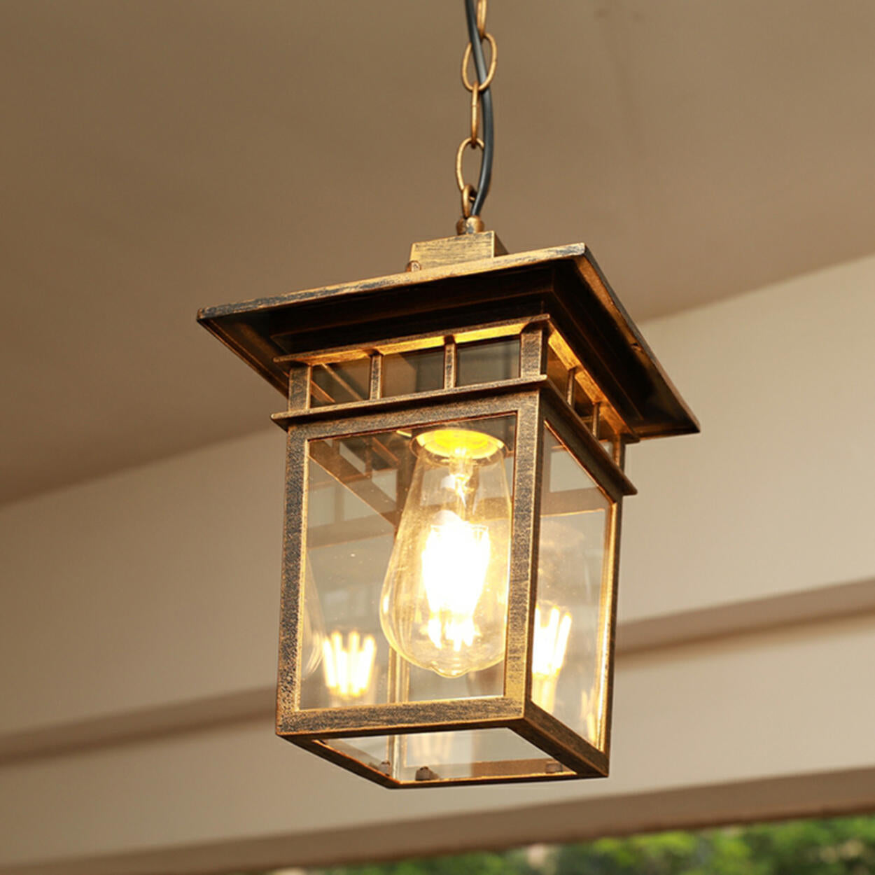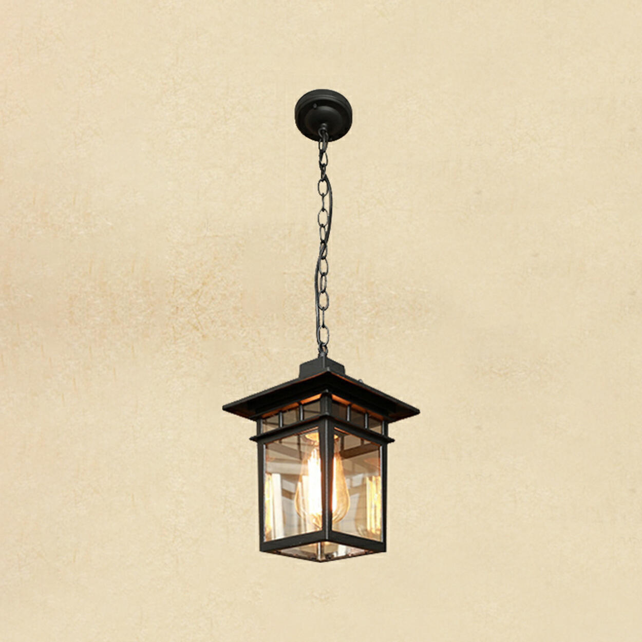 This vintage square glass pendant light perfectly blends classic design with modern functionality, adding an elegant touch to your outdoor space. Whether it's for your porch, garden, or patio, this lamp is not only practical, it's also a work of art. Its black metal frame complements the clear glass shade, ensuring sufficient brightness while adding a sense of visual depth.