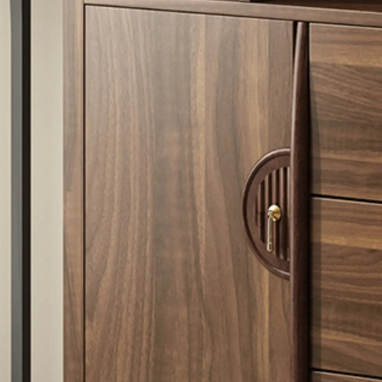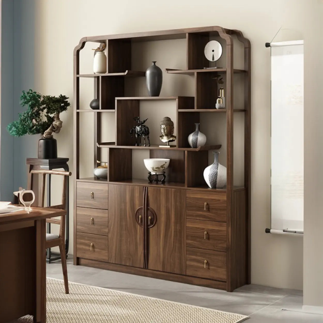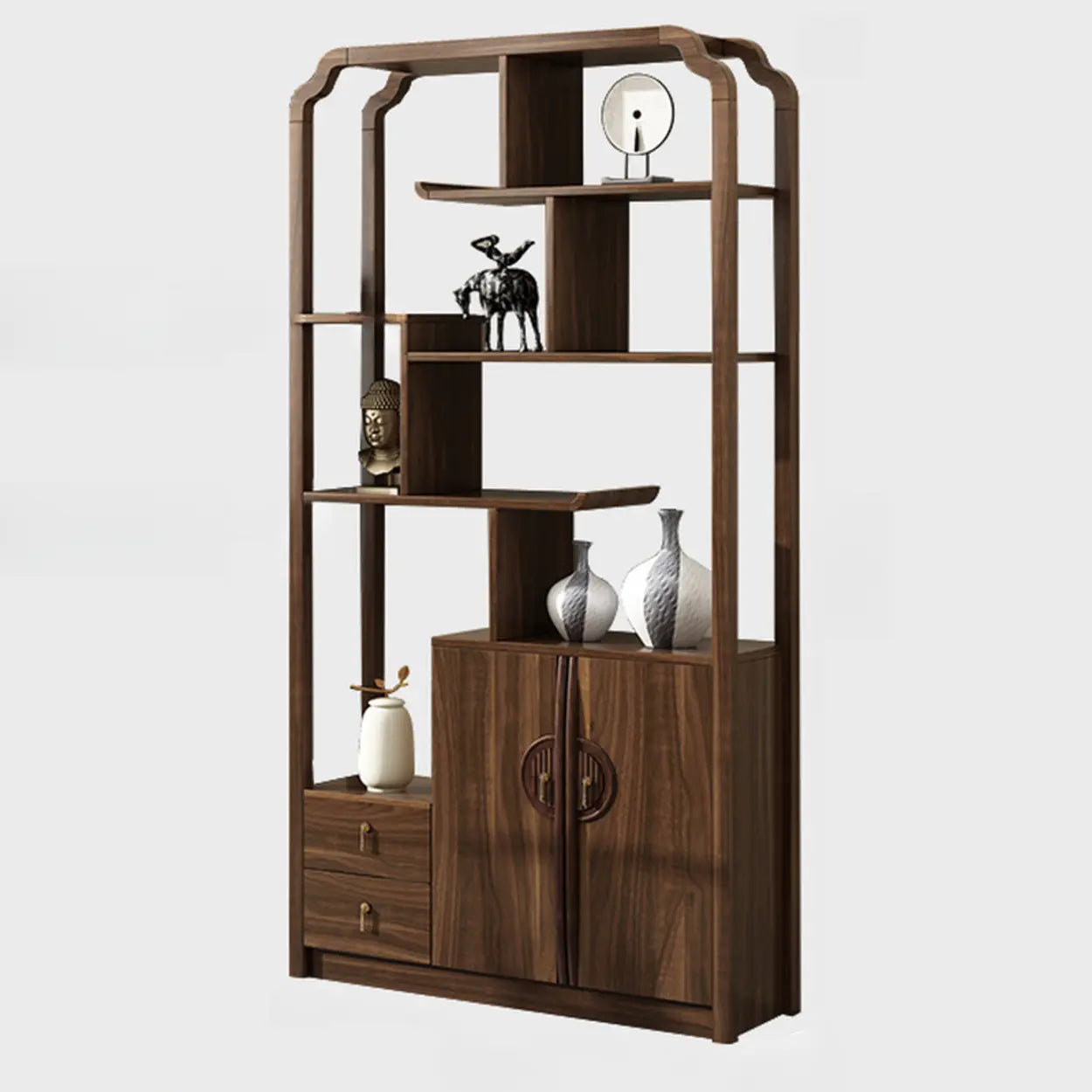 This freestanding cocoa-colored porcelain cabinet is made of rubber wood, which is sturdy and beautiful, making it an ideal choice for home space. Its large storage space and open display shelf design make your home environment full of modern art.