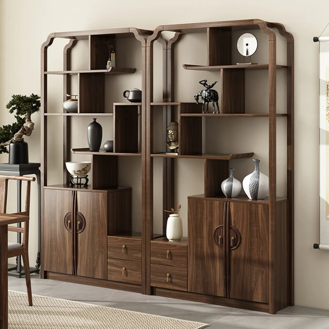 Vintage Open Rubberwood Brown Curio China Cabinets