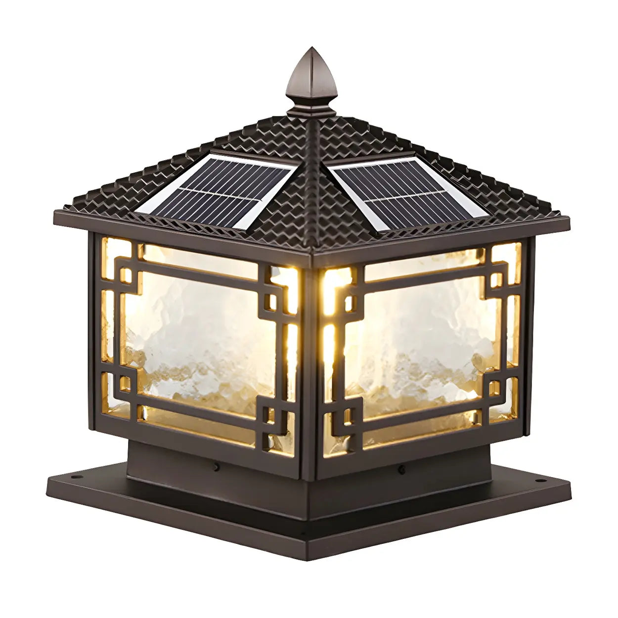 This retro solar outdoor light is a classic Chinese courtyard style, enriching your garden with a touch of elegance. The outstanding craftsmanship and fine aluminum alloy warrant durability and anti-weather. It automatically charges during the day and lights up at night, offering up to 8 hours of lighting for your outdoor space. It is sustainable and power-saving and is also easy to install.