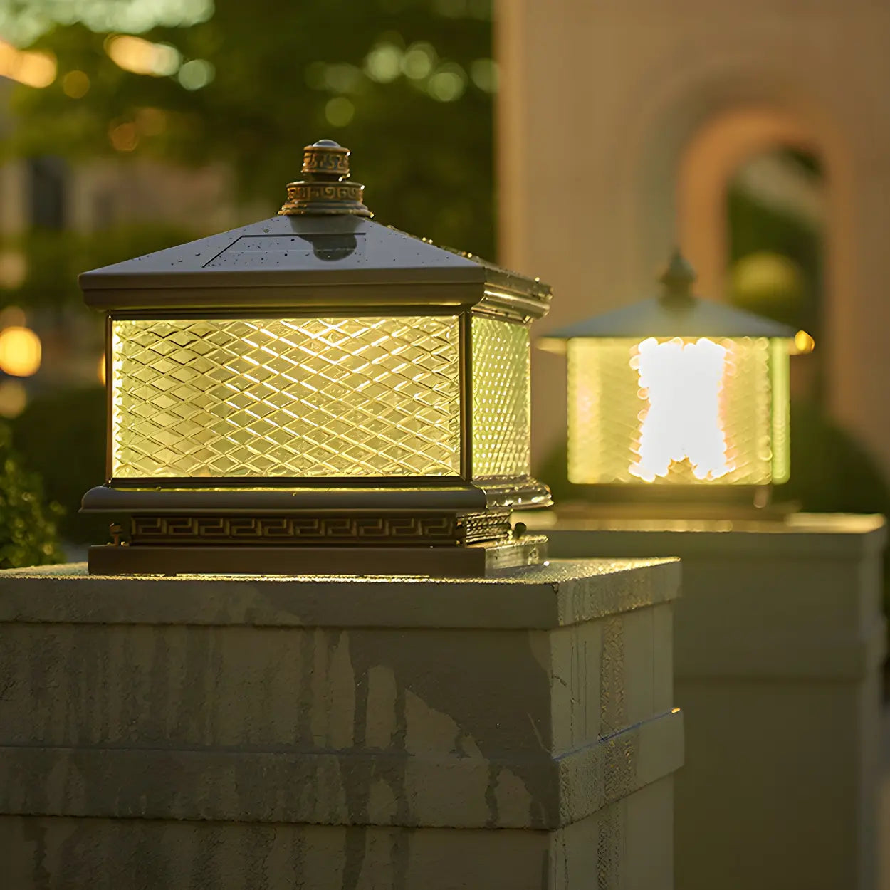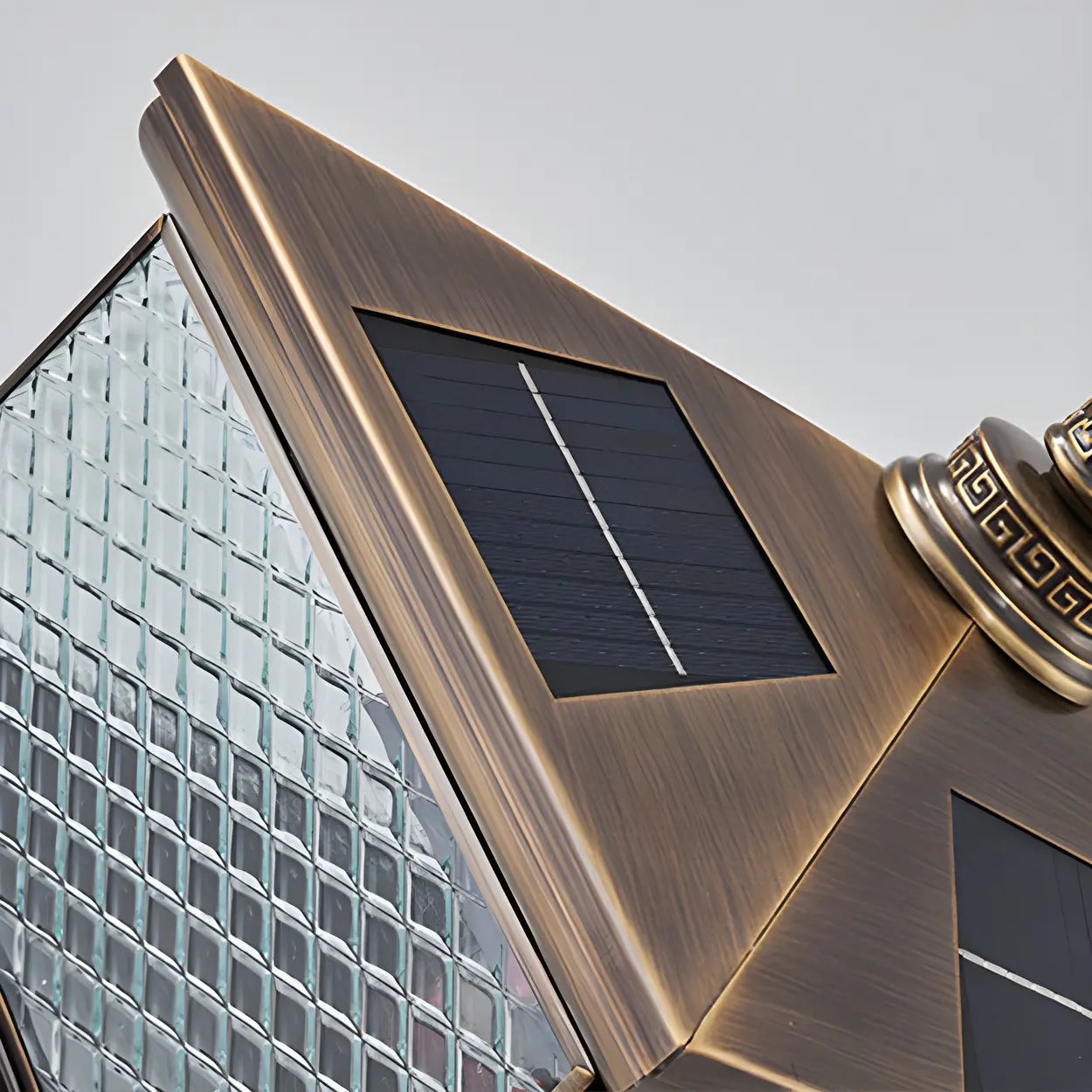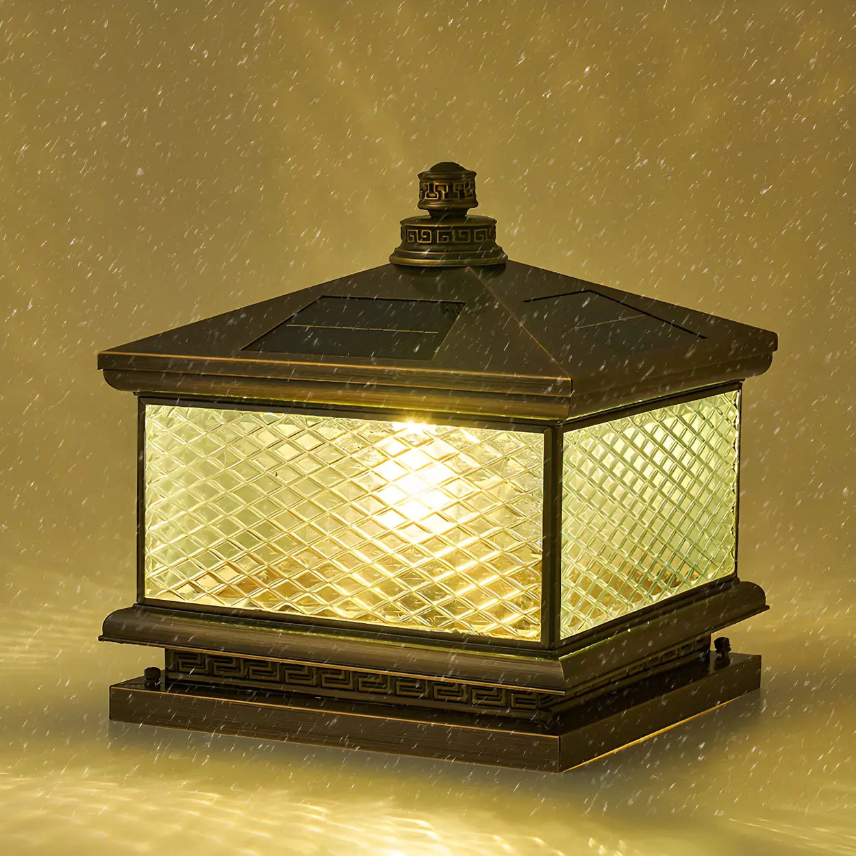 Vintage Square Glass Solar Lantern Bronze Outdoor Lamp