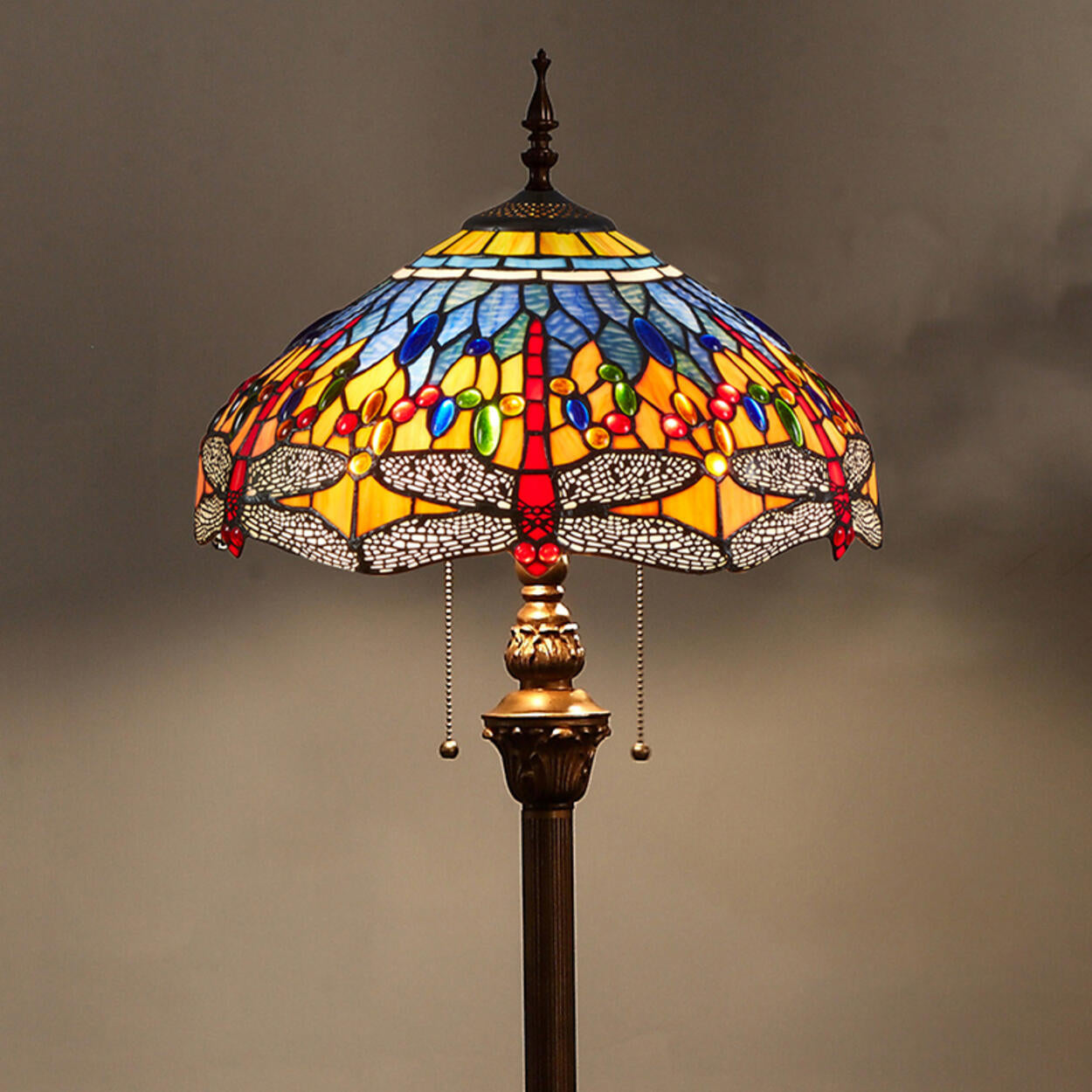 Vintage Tiffany Style Dome Stained Glass Floor Lamp