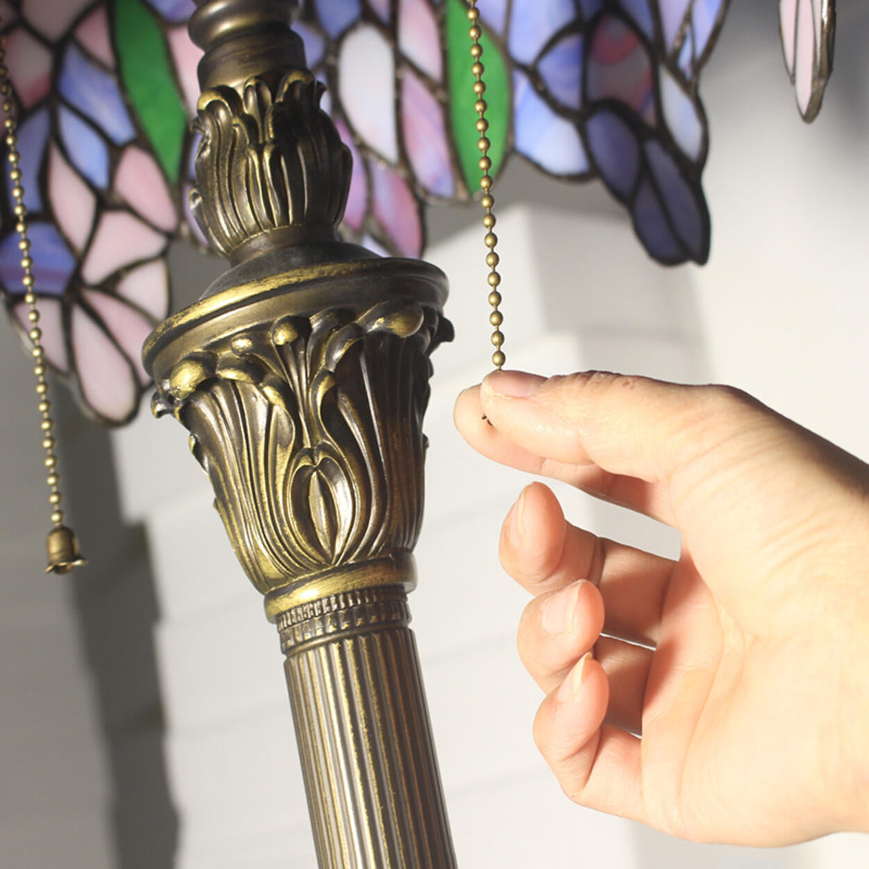 This classic Tiffany style floor lamp will add timeless charm to your home. The colorful dome glass lampshade, perfectly displayed with its unique handcraft, shows the perfect fusion of art and practicality. The green leaf pattern not only adds vitality to the room but also creates a warm atmosphere. Whether in the living room, study or bedroom, this lamp can perfectly integrate and enhance the artistic atmosphere of the space.