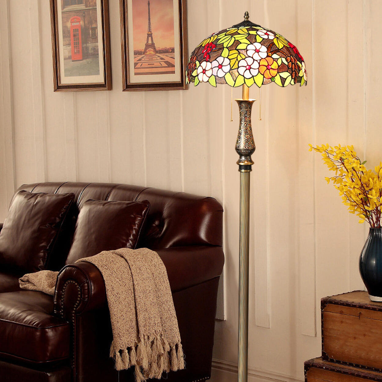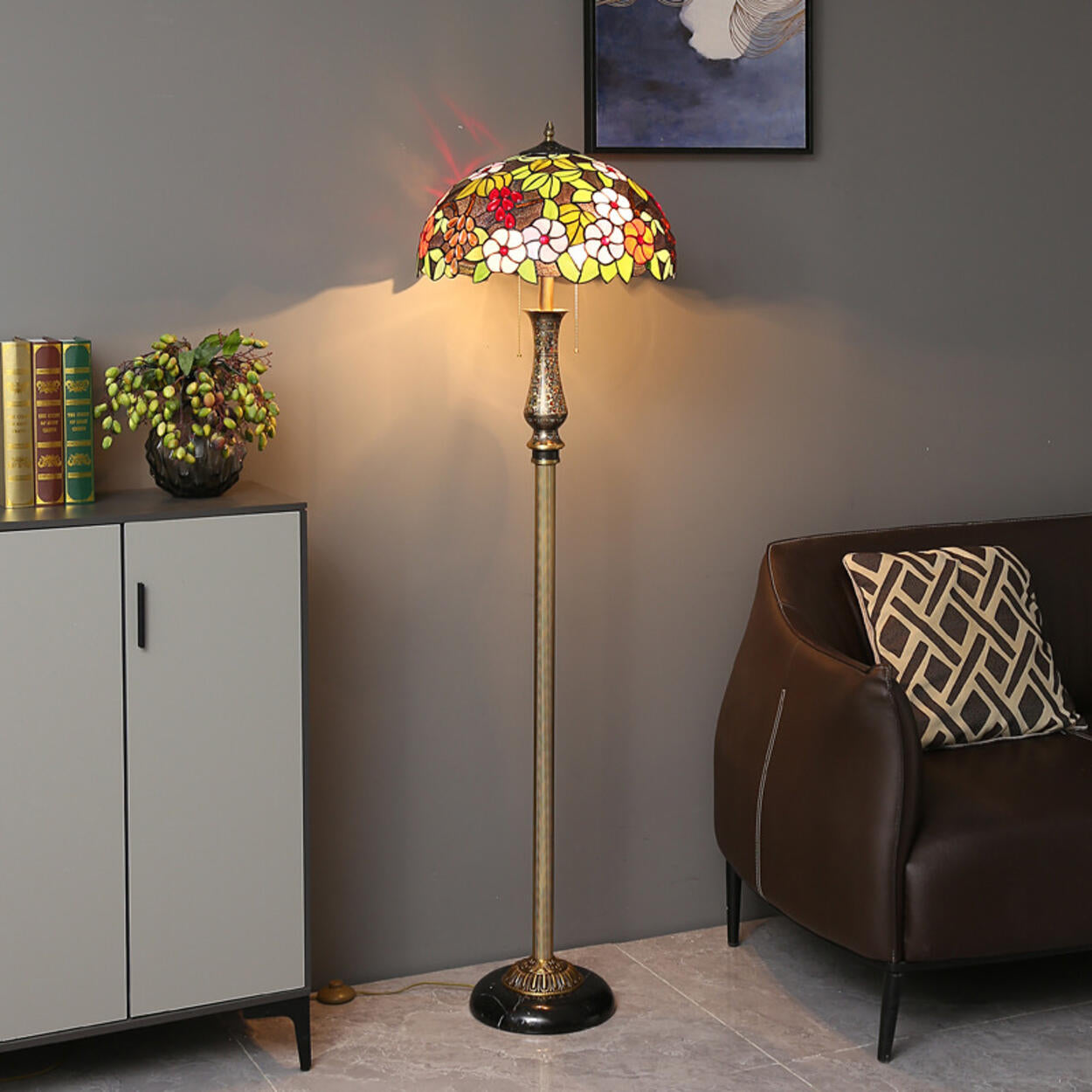 Vintage Tiffany-Style Stained Glass Dome Floor Lamp