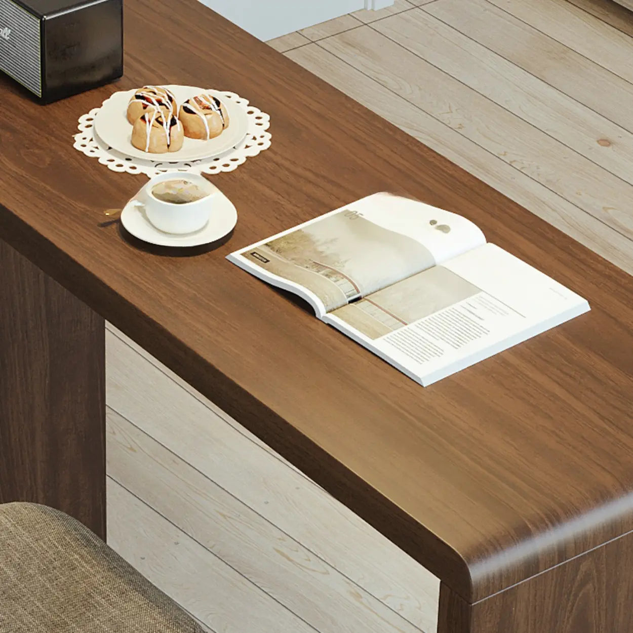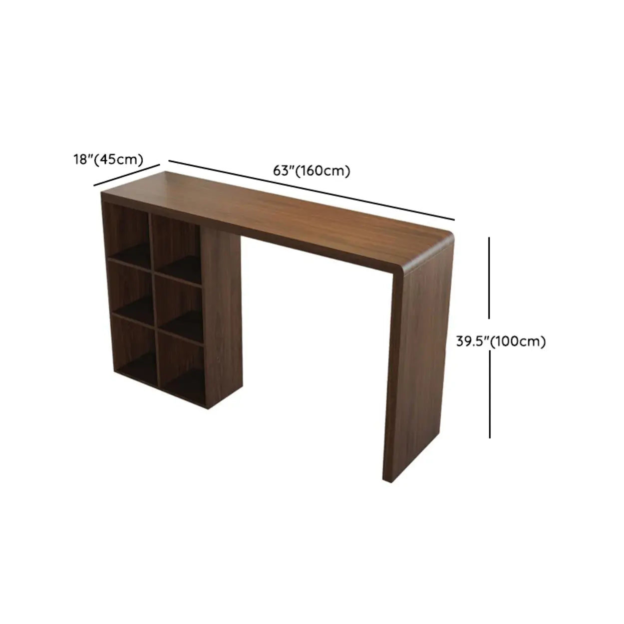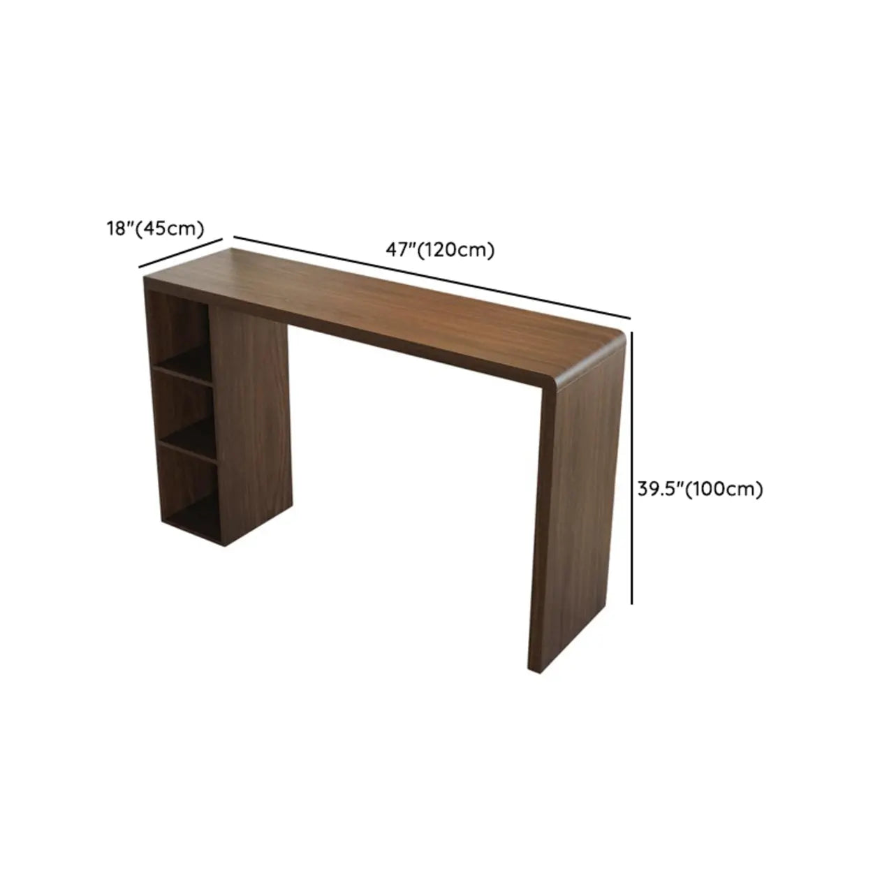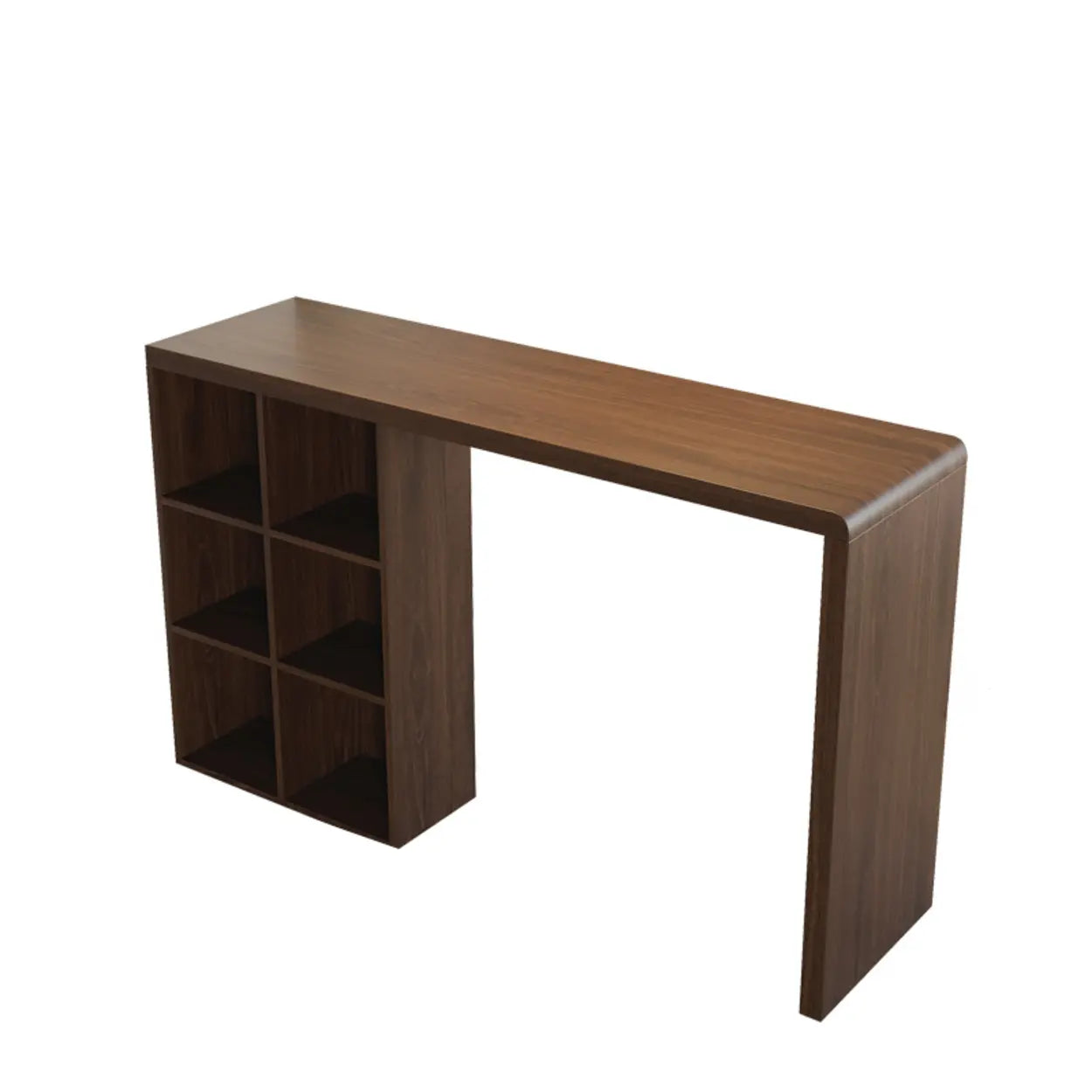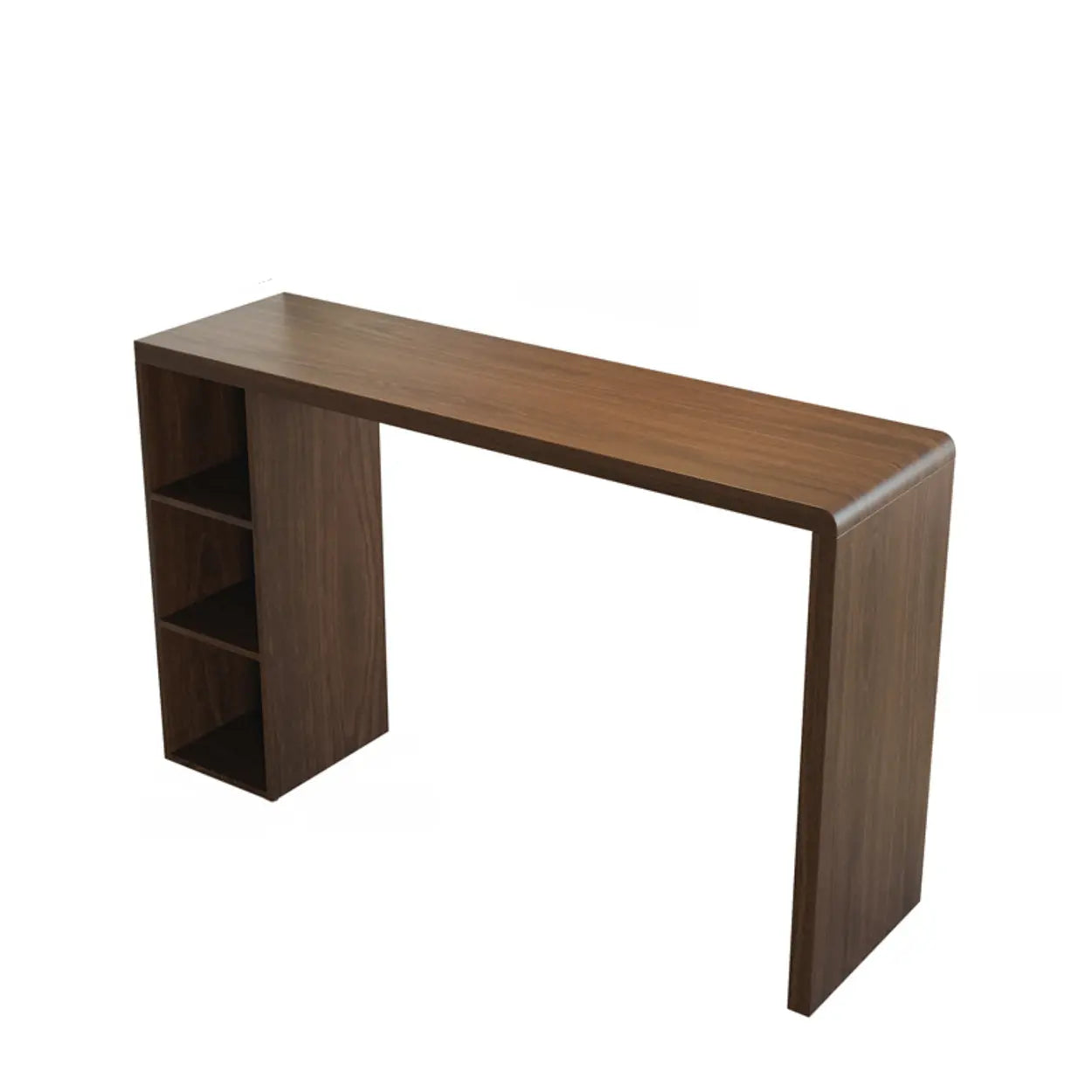 Elevate your kitchen or dining space with this stylish bar table. The rich wood finish and built-in shelving combine modern design with everyday convenience. Perfect for small areas, it maximizes space and offers ample room for storage while providing a comfortable spot for meals, work, or socializing.