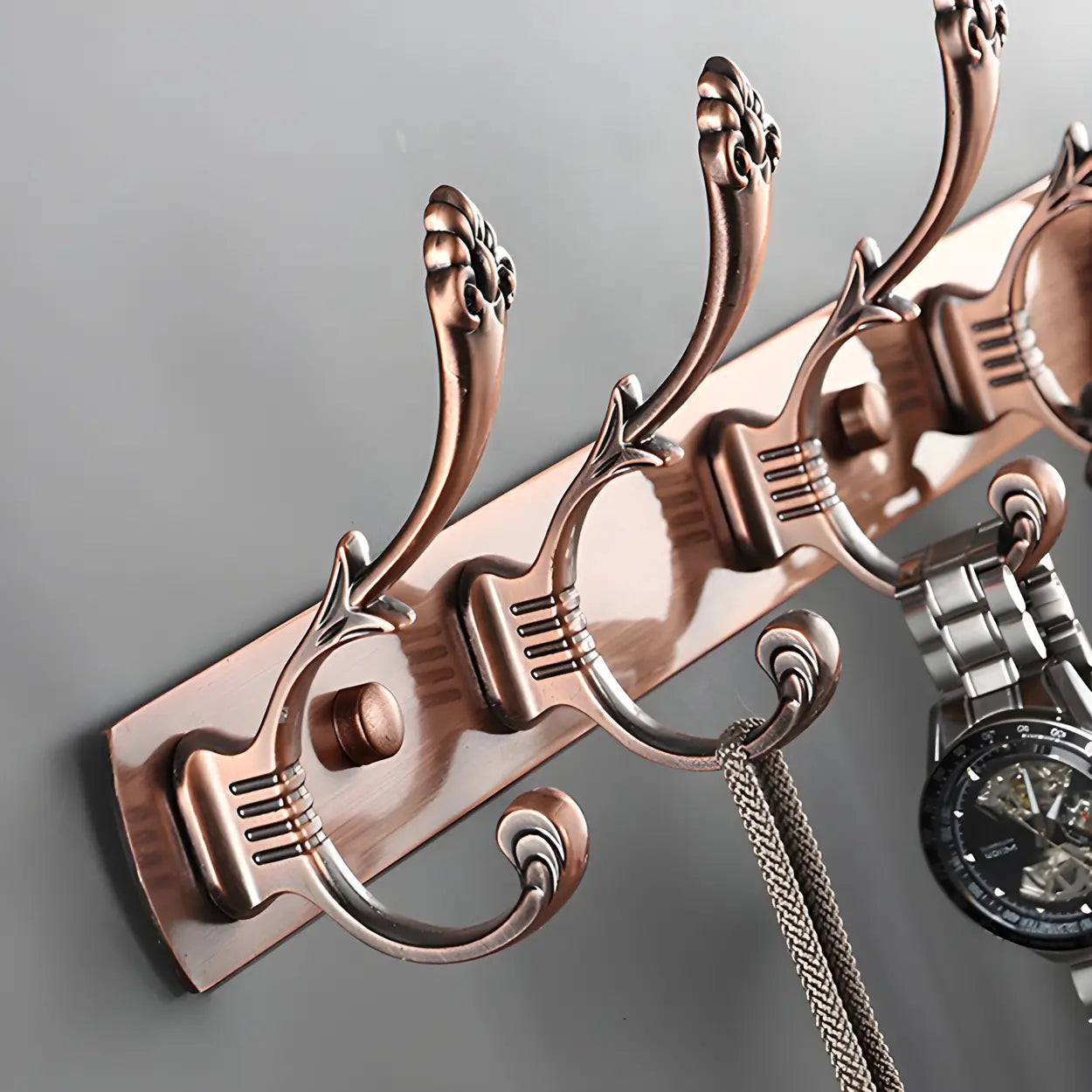 Wall-Mounted Metal Bronze Decorative Coat Rack with Hooks