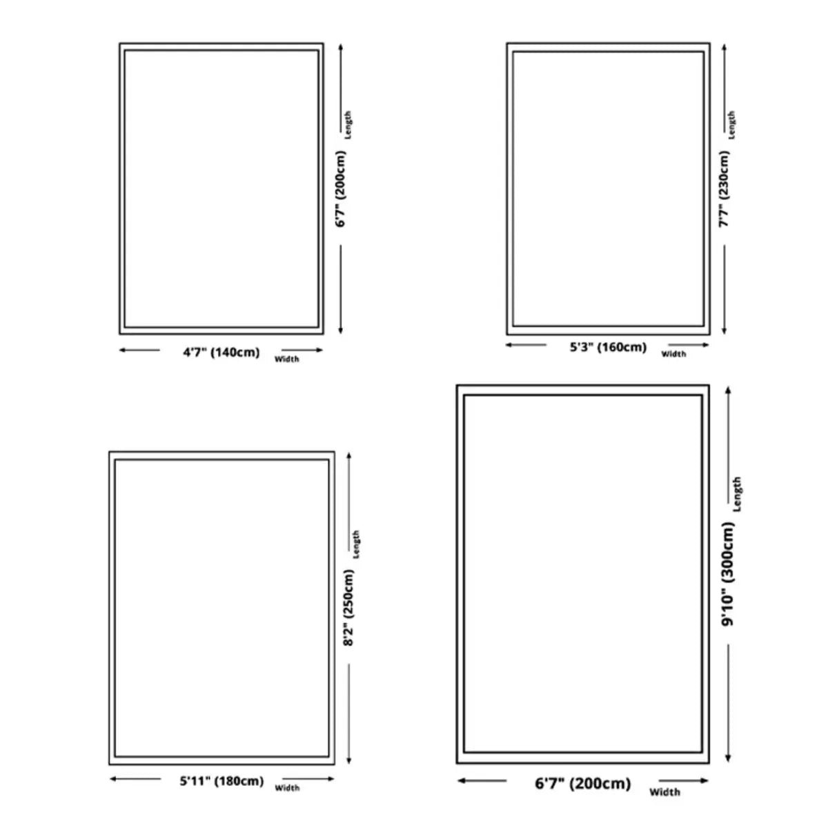 | Size | 4'7" x 6'7",5'3" x 7'7",5'11" x 8'2",6'7" x 9'11" |