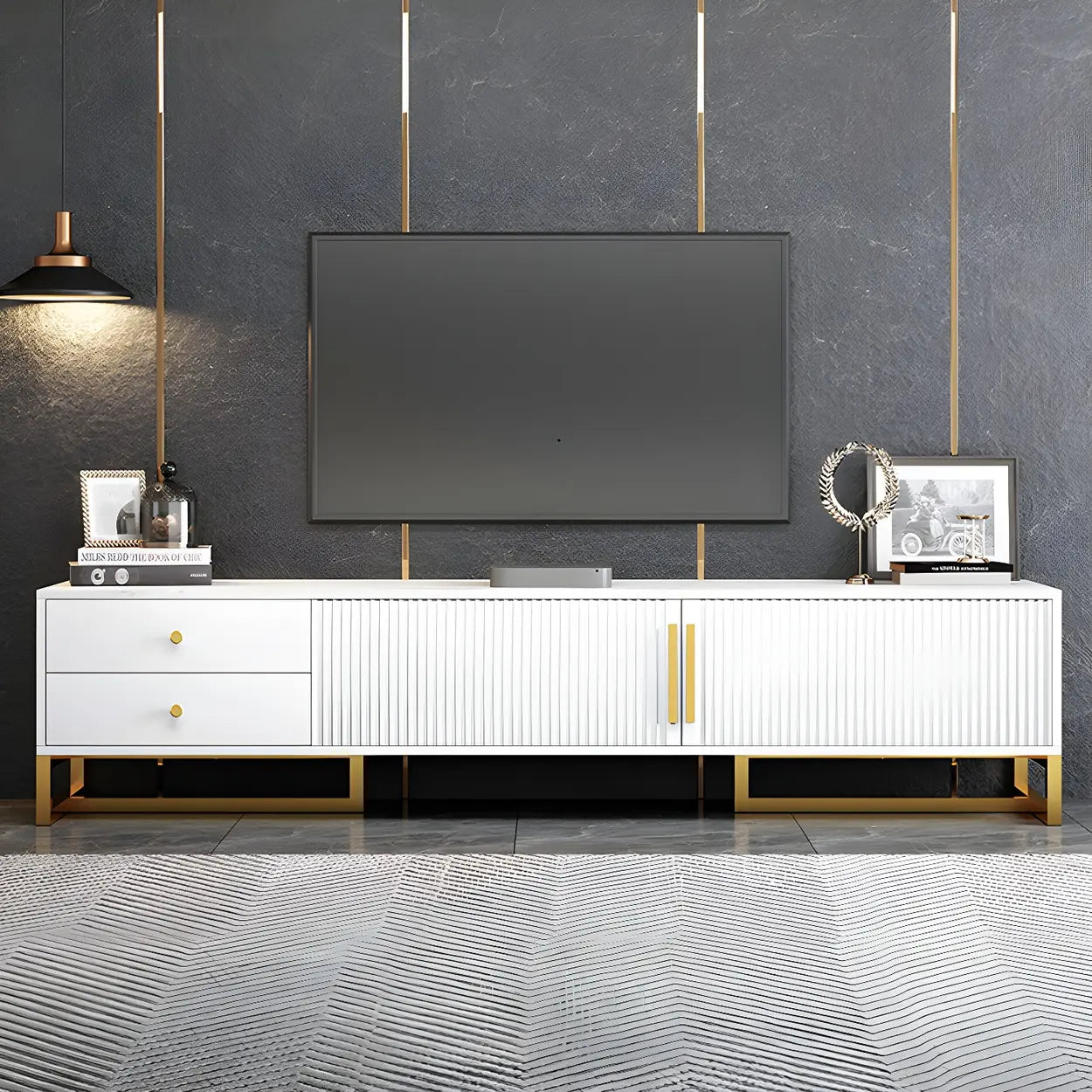 White Artificial Wood Enclosed Storage Drawers TV Stand