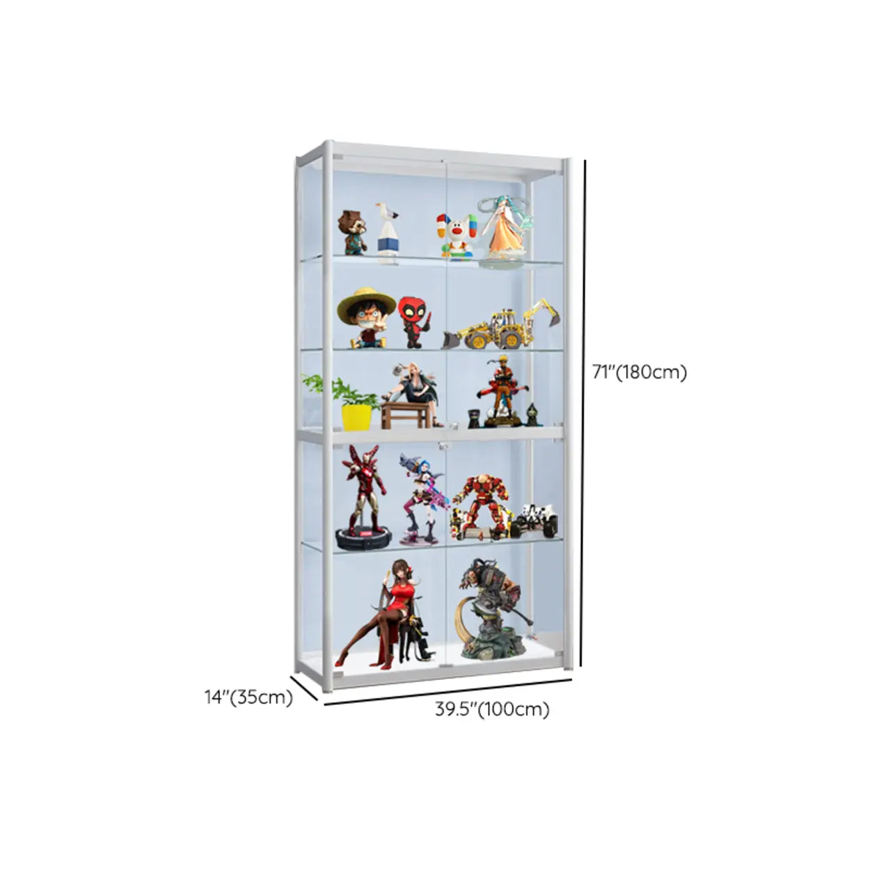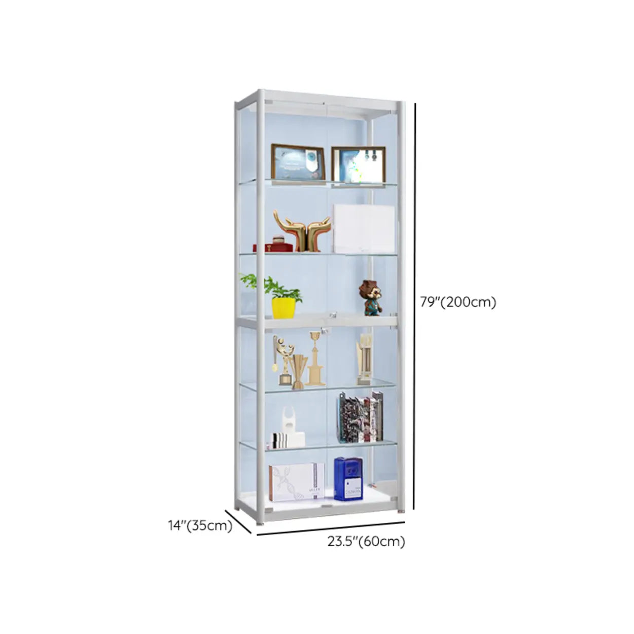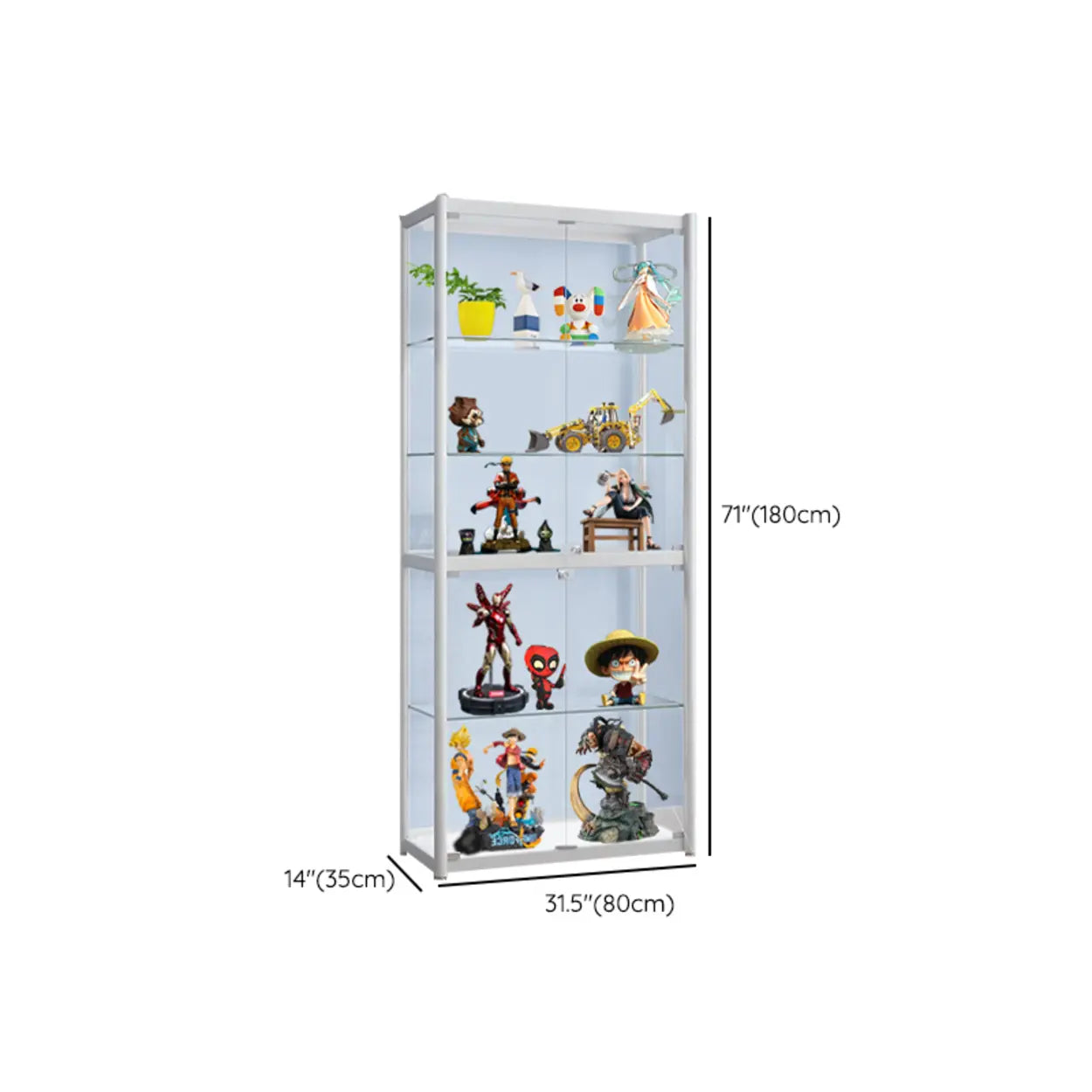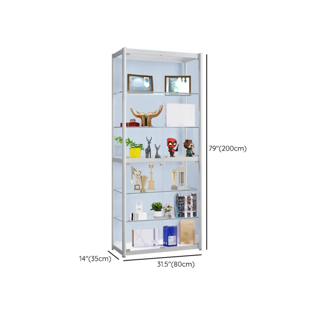 White Living Room 5 Shelves Glass Curio Display Cabinet