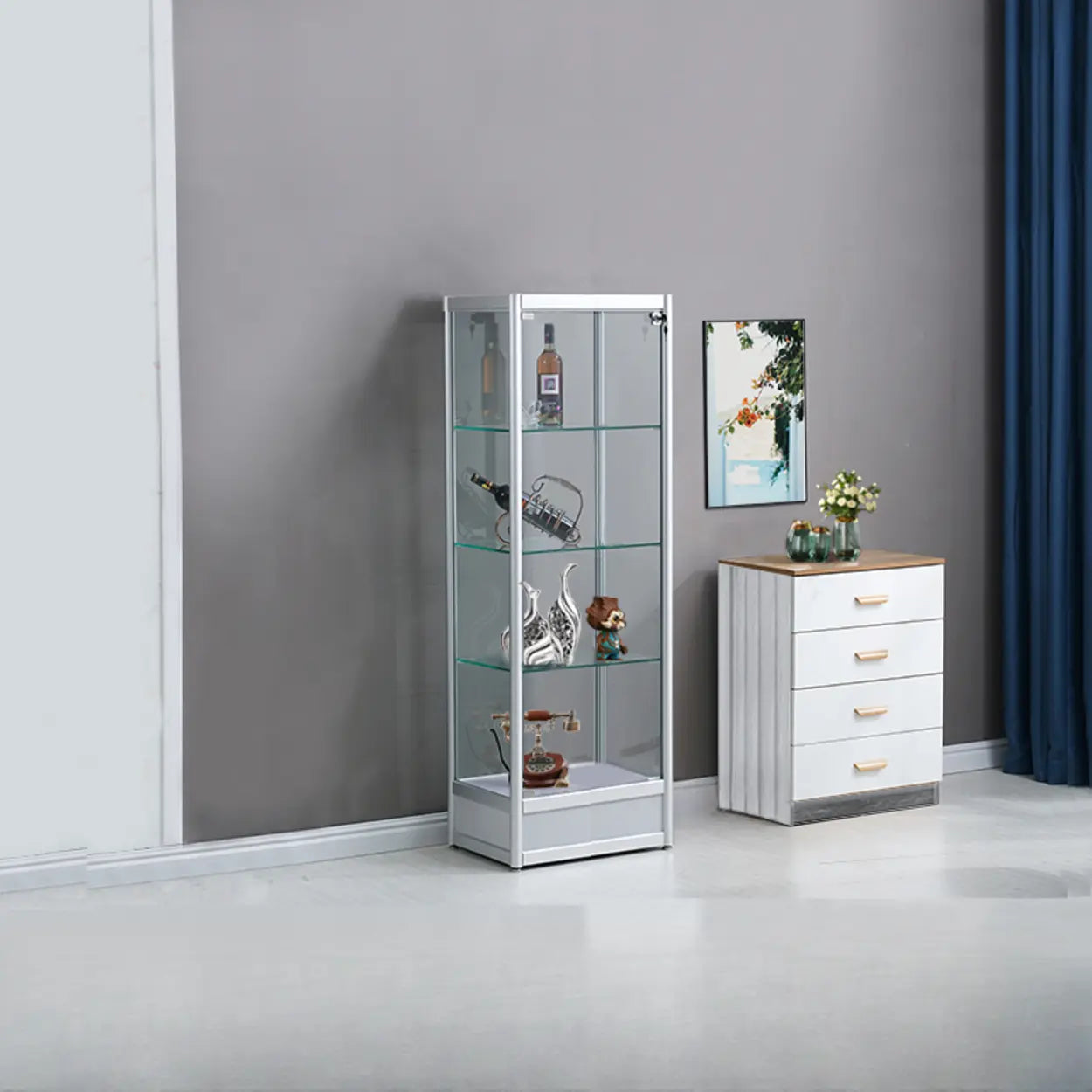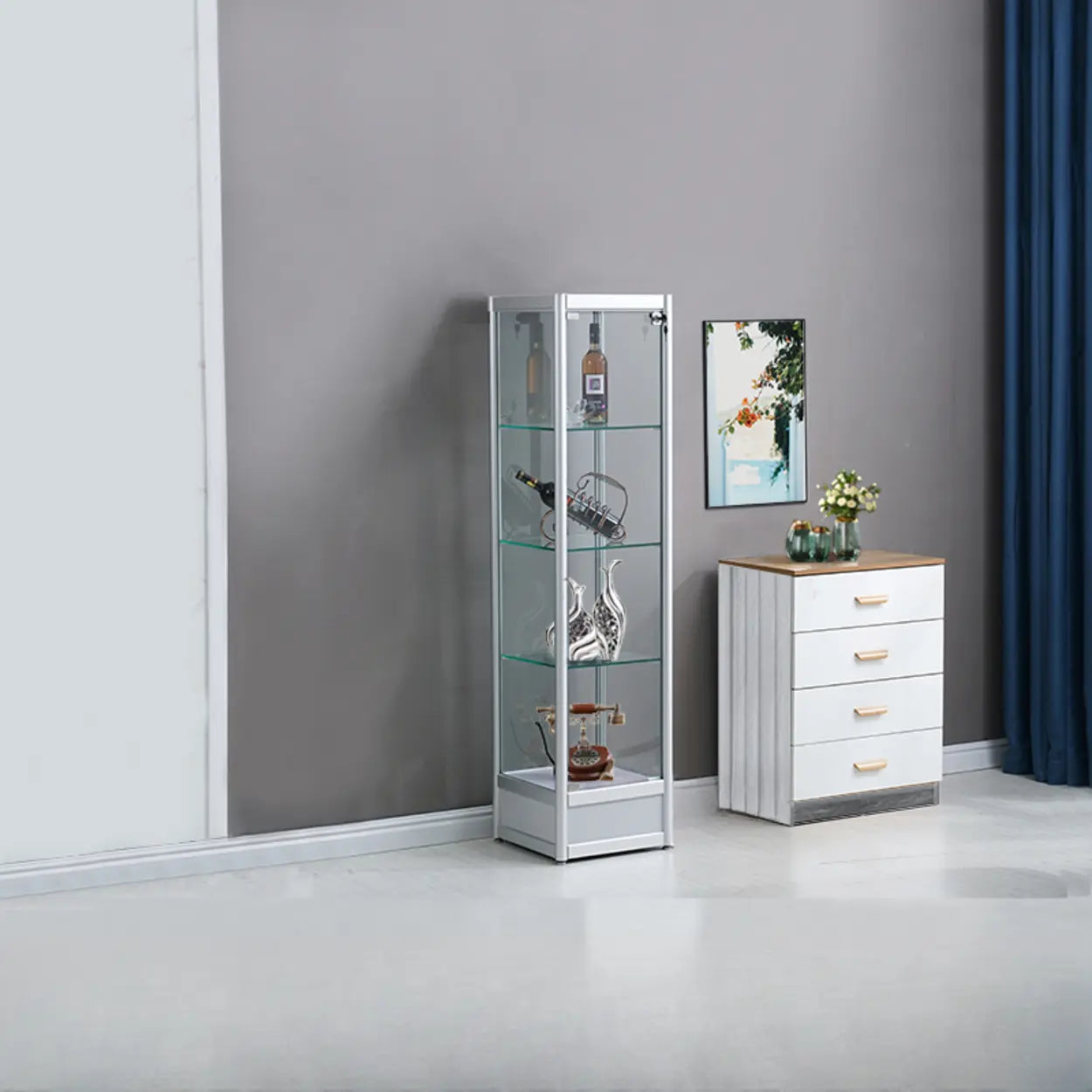 This modern five-layer glass display cabinet is designed for elegant modern homes and perfectly fits any decoration style. The stylish and simple design is not only ideal for the living room but also suitable for study rooms, offices, and other occasions, adding an artistic atmosphere to your space. The cabinet body uses high-quality tempered glass combined with a sturdy metal frame to provide excellent stability and durability.