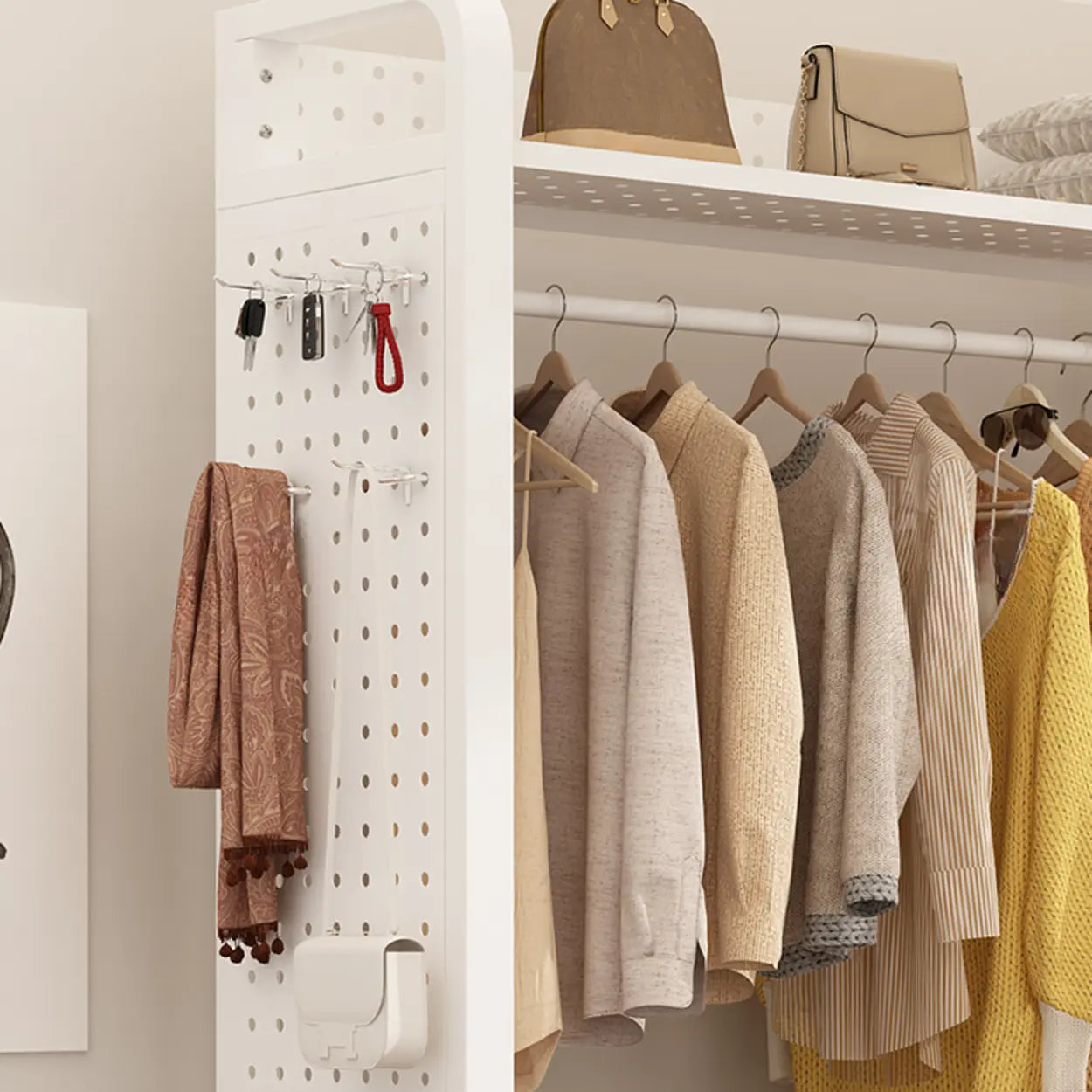 White Metal Freestanding Shelves Organizer Coat Rack - 24"L x 20"W x 75"H is backordered and will ship as soon as it is back in stock.