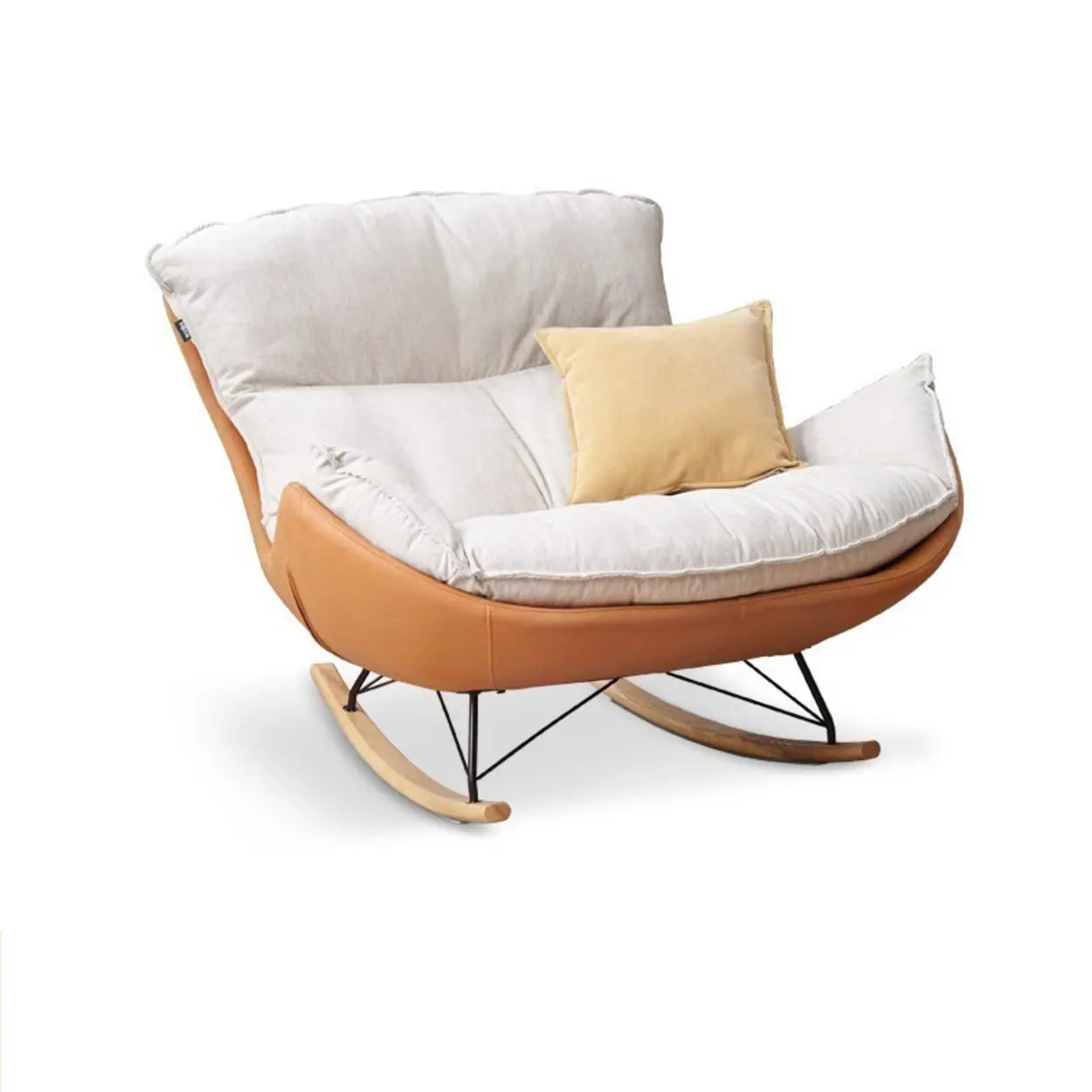 This fashionable rocker chair combines modernity and comfort perfectly, a wonderful option to bring home. Designed with the highest quality soft material, the sitting surface is as soft as one's hands can touch it, and the resistance to wear and tear is extraordinary. With its neutral, classy beige tone, it will definitely fit your furniture at home whether it's in the living area or a bedchamber.