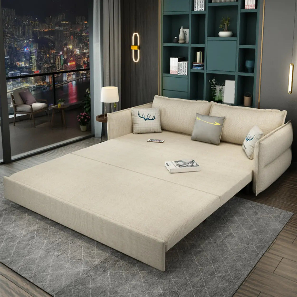 Blending perfectly the elements of beauty and practicality, this minimalist sleeper sofa bed is an excellent option for your parlor. Giving the room a feeling of freshness and naturalness, its pure white cloth is versatile enough to match any type of home. For daily relaxation or for entertaining visitors, it will serve your needs.
