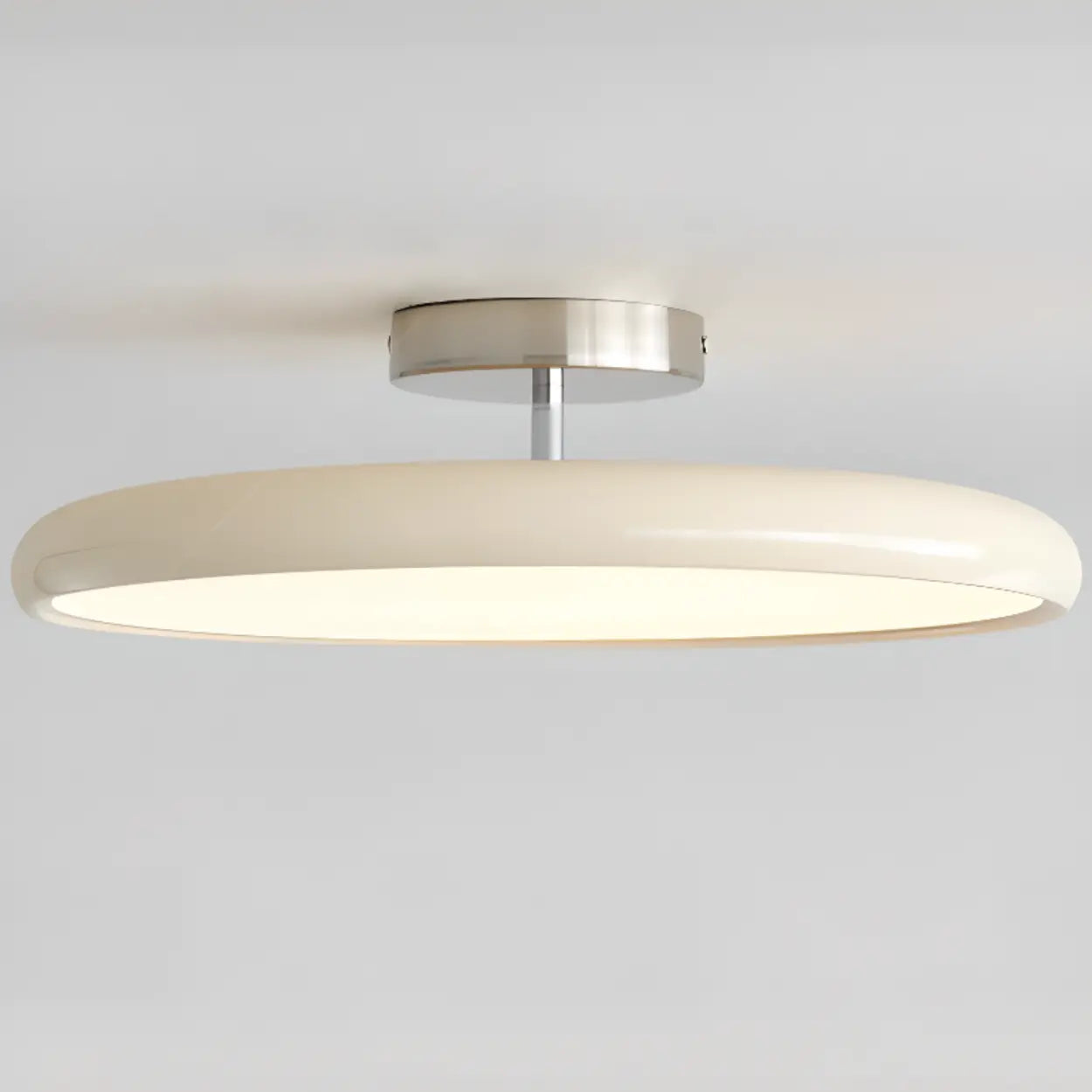 This white semi-flush mount light adopts a minimalist disc design with simple and smooth lines and a very modern feel.