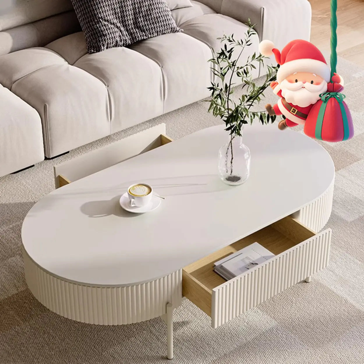 This modern white oval coffee table is the perfect choice for your living room. It not only has a stylish and simple design but also has an excellent scratch-resistant desktop, ensuring that it remains intact during daily use. The storage design of two drawers can easily organize the clutter, bringing more convenience to your life.