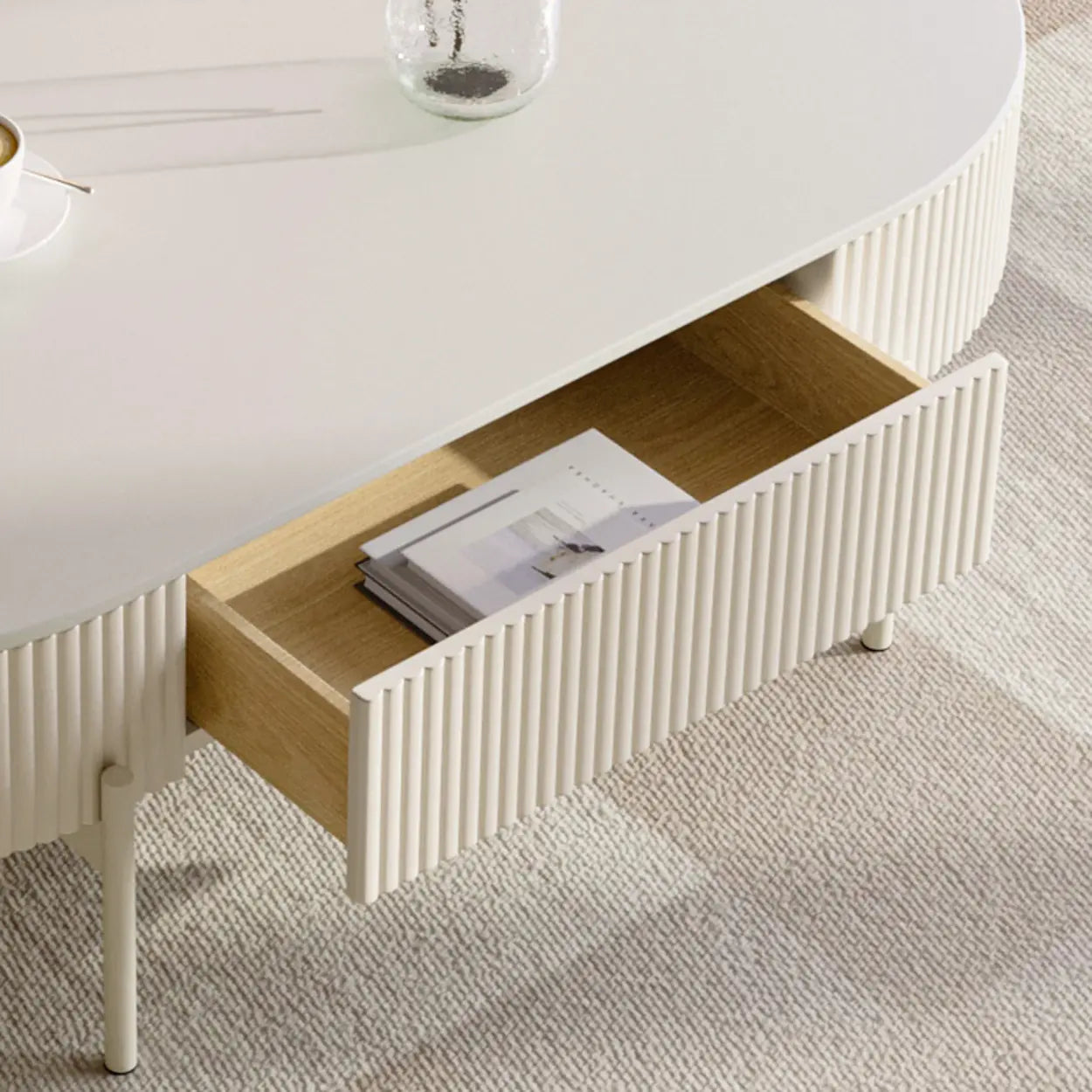 White Scratch Resistant Stone Oval Storage Coffee Table