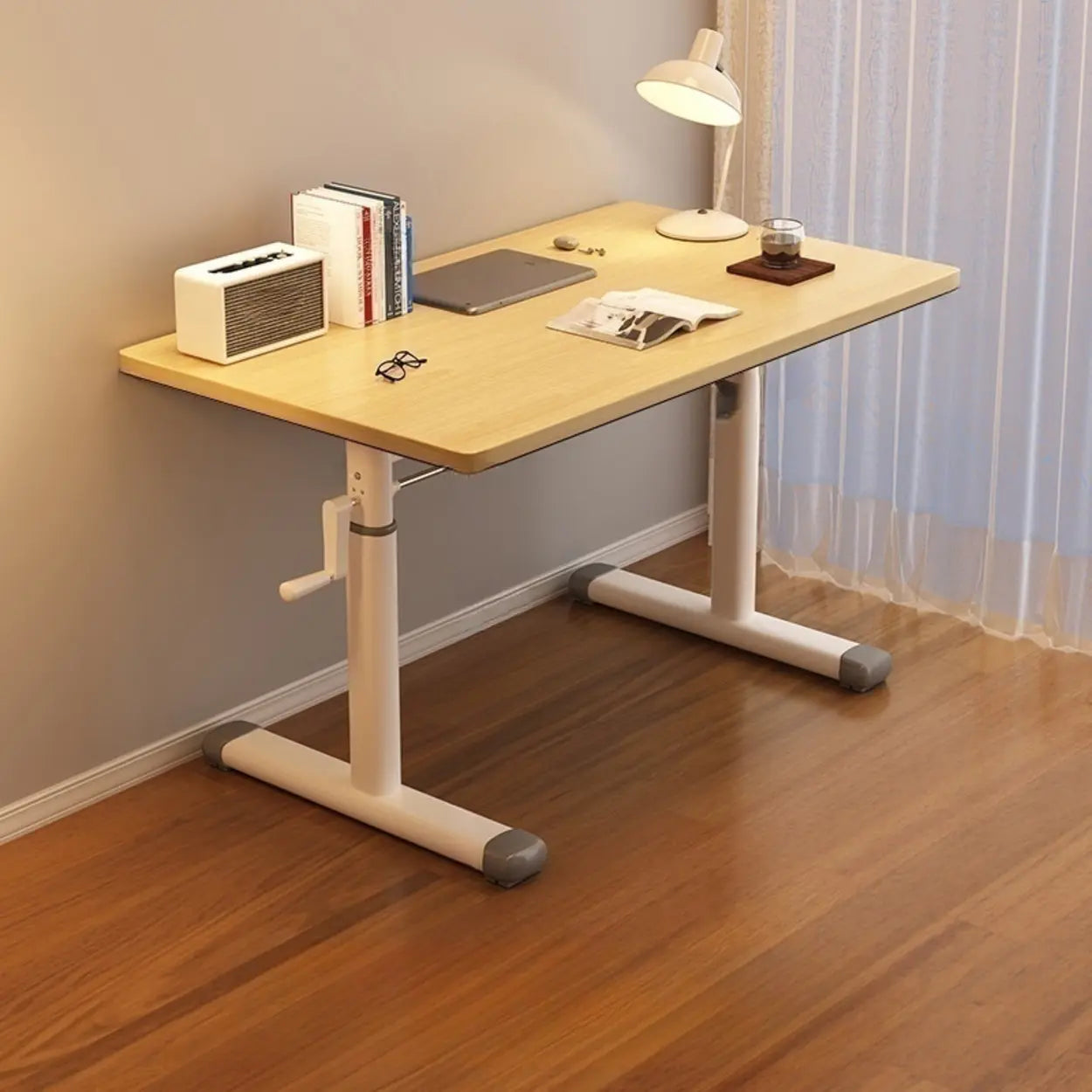 This manually adjustable desk features a modern design that combines elegance with practicality. Its T-shaped base presents sturdy support, while the smooth wooden desktop adds a natural and beautiful atmosphere. The rotating handle design allows you to easily adjust the desktop height and switch working status at any time as needed.