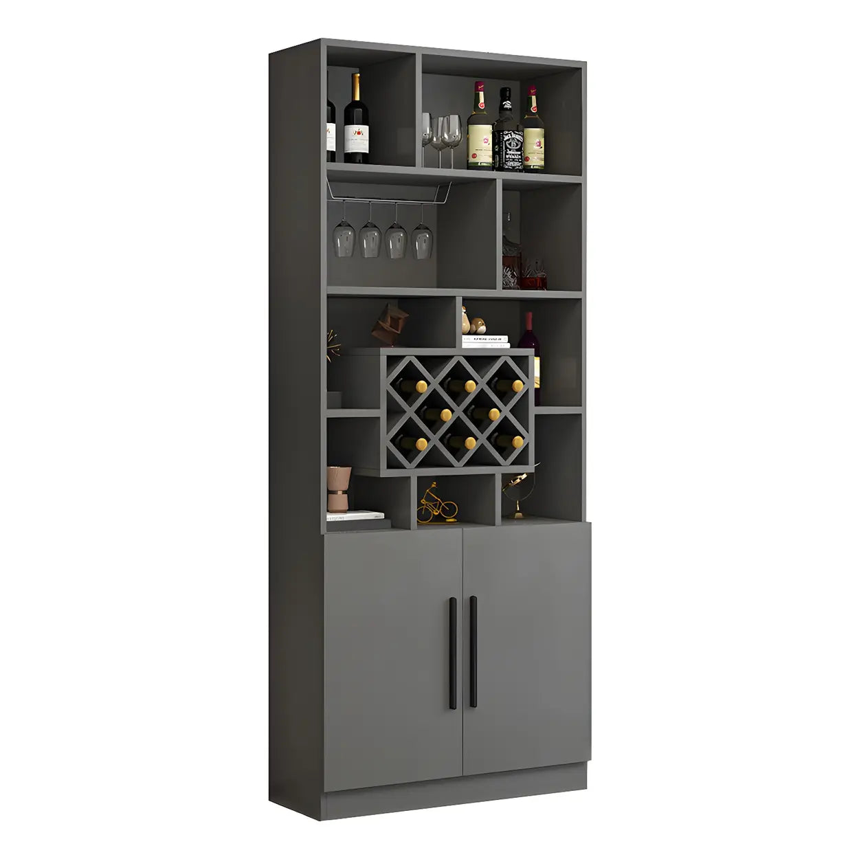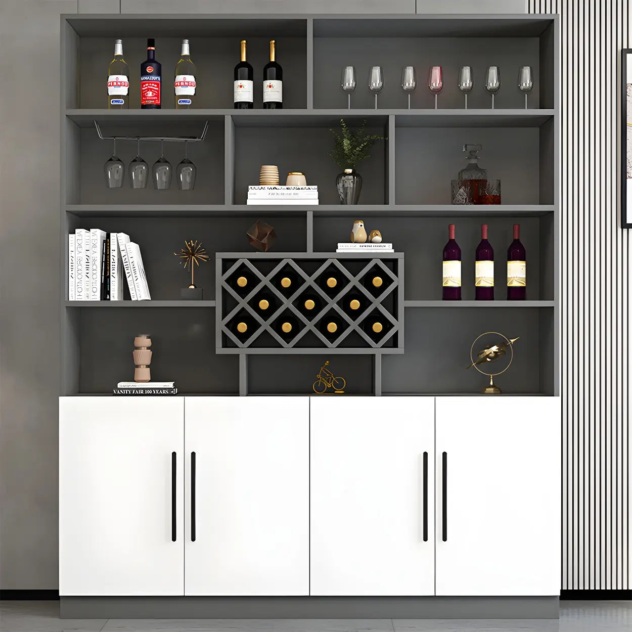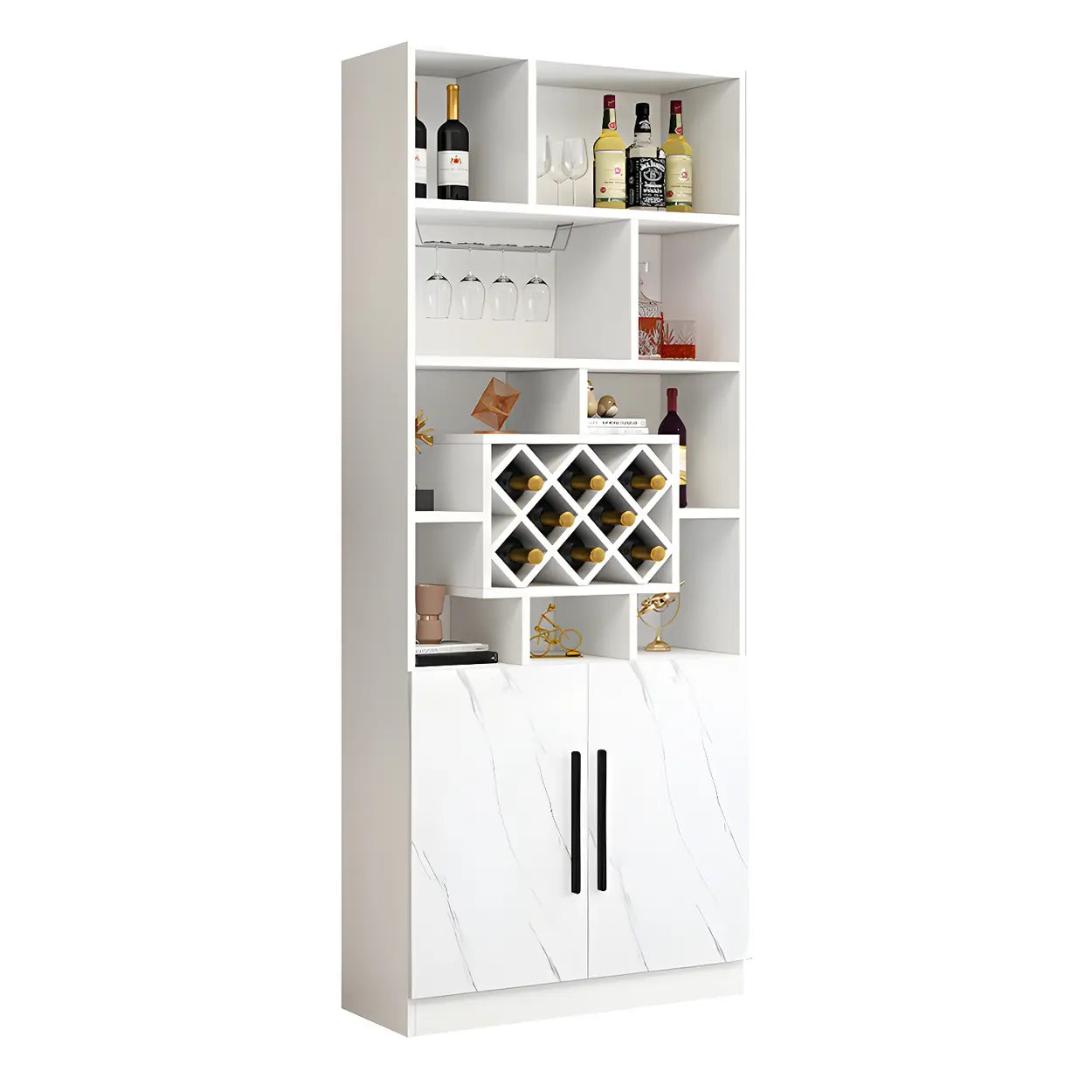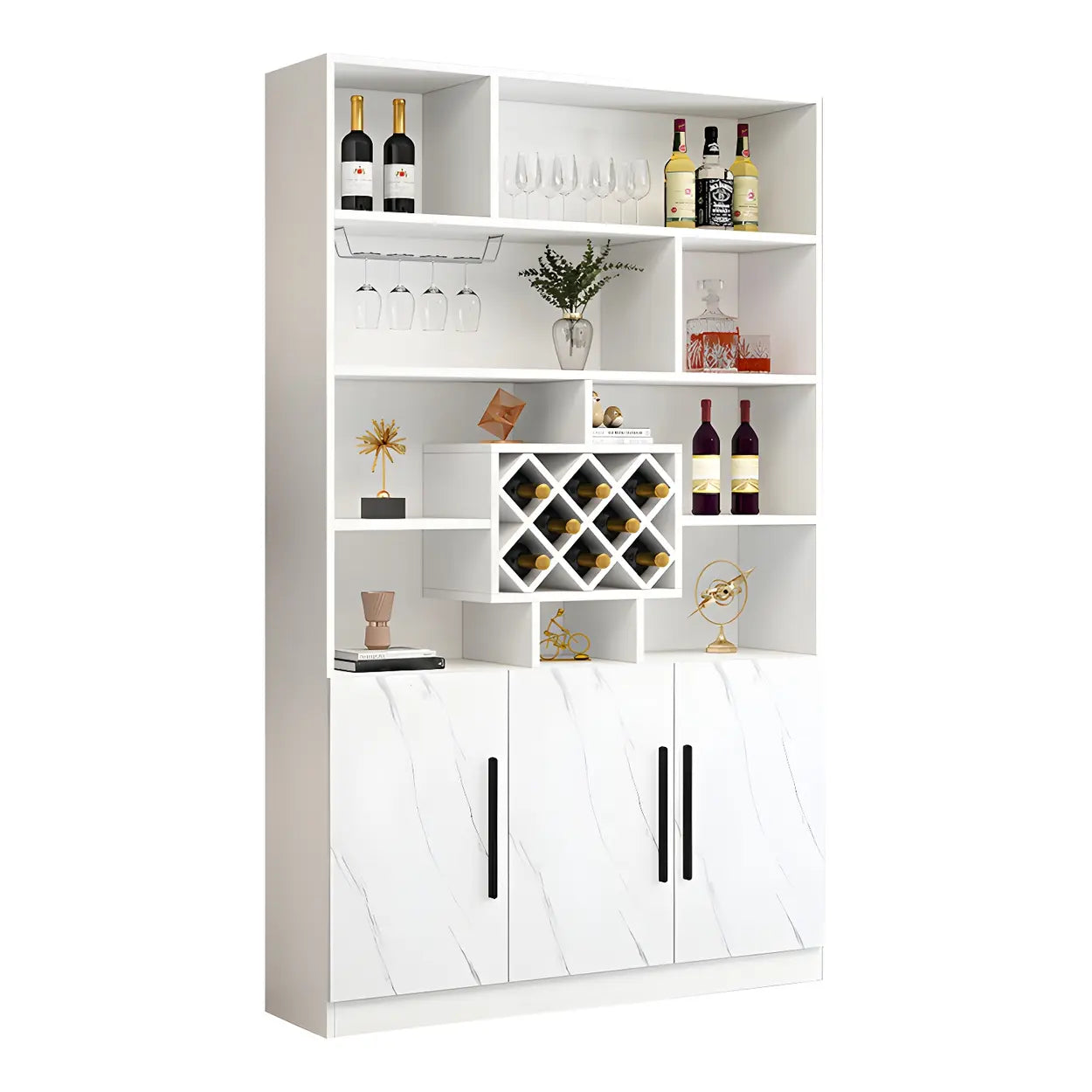 Equipped with a stemware rack, it conveniently holds wine glasses, enhancing space utilization and organization.