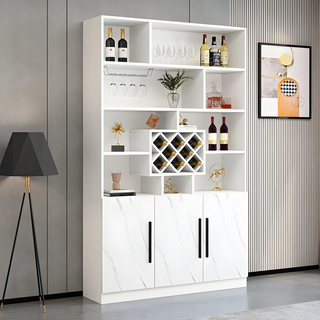 This modern style white free-standing wine rack adds a generous touch to your home with its simple and elegant design.It is sturdy and durable and easy to clean and maintain. It can be perfectly integrated into various decoration styles, whether in a home or commercial environment.