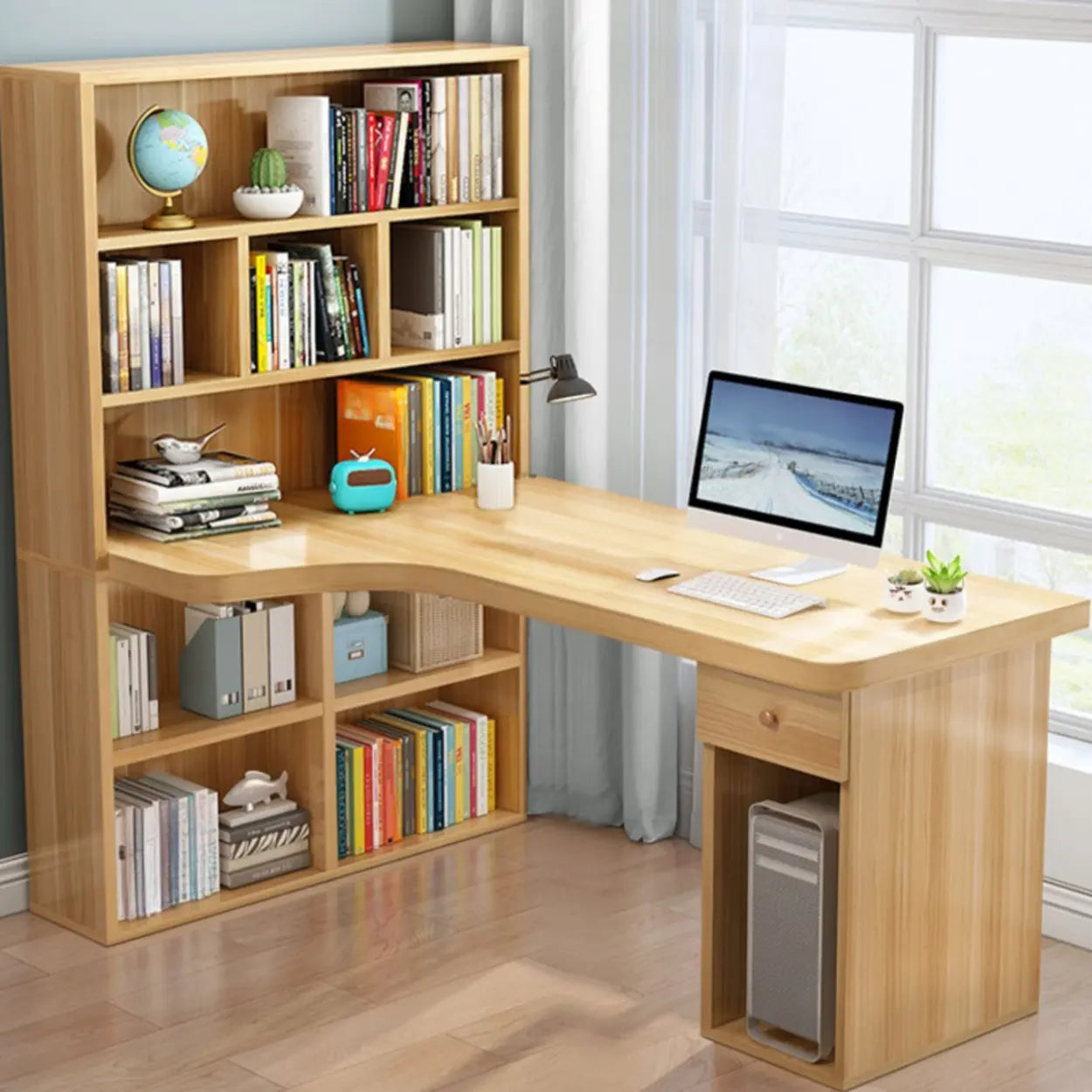 Wood L-Shaped Storage Kids Computer Desk with Hutch