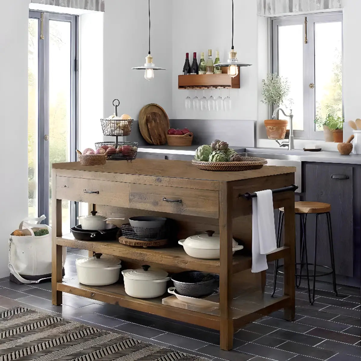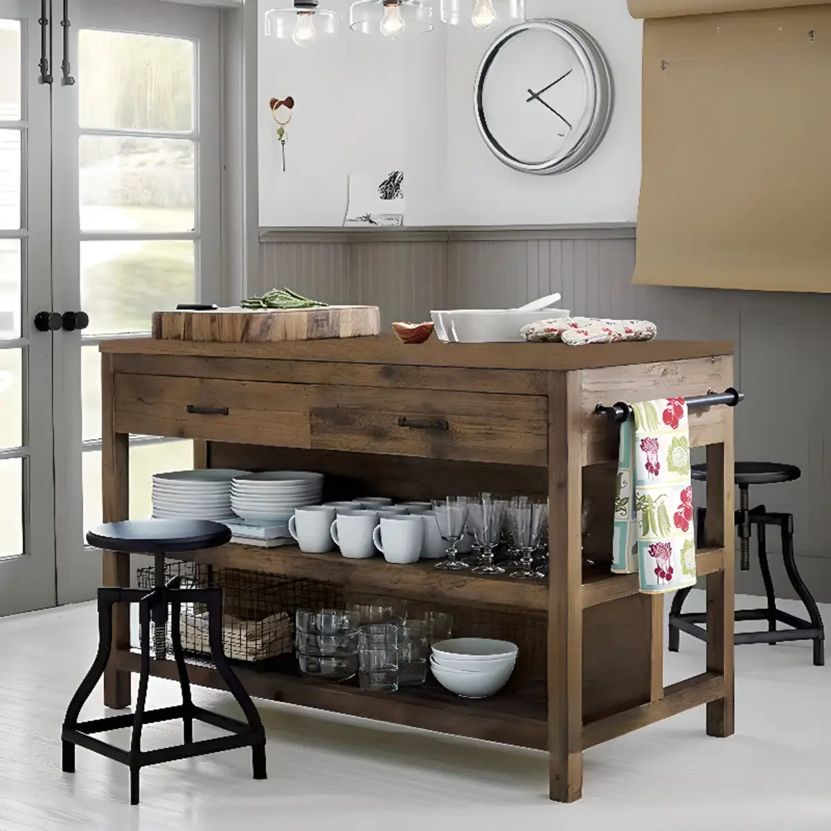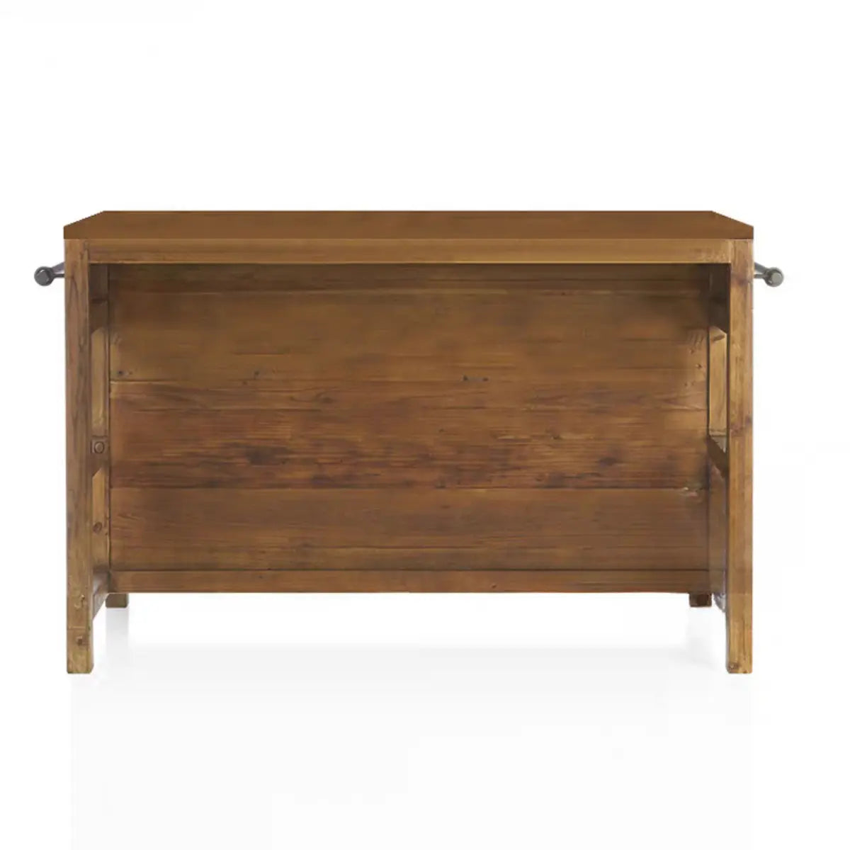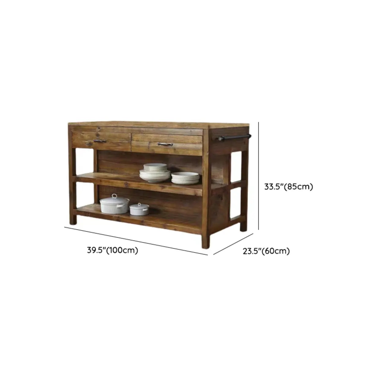 Wood Rectangular Brown Open Storage Kitchen Island with Rack