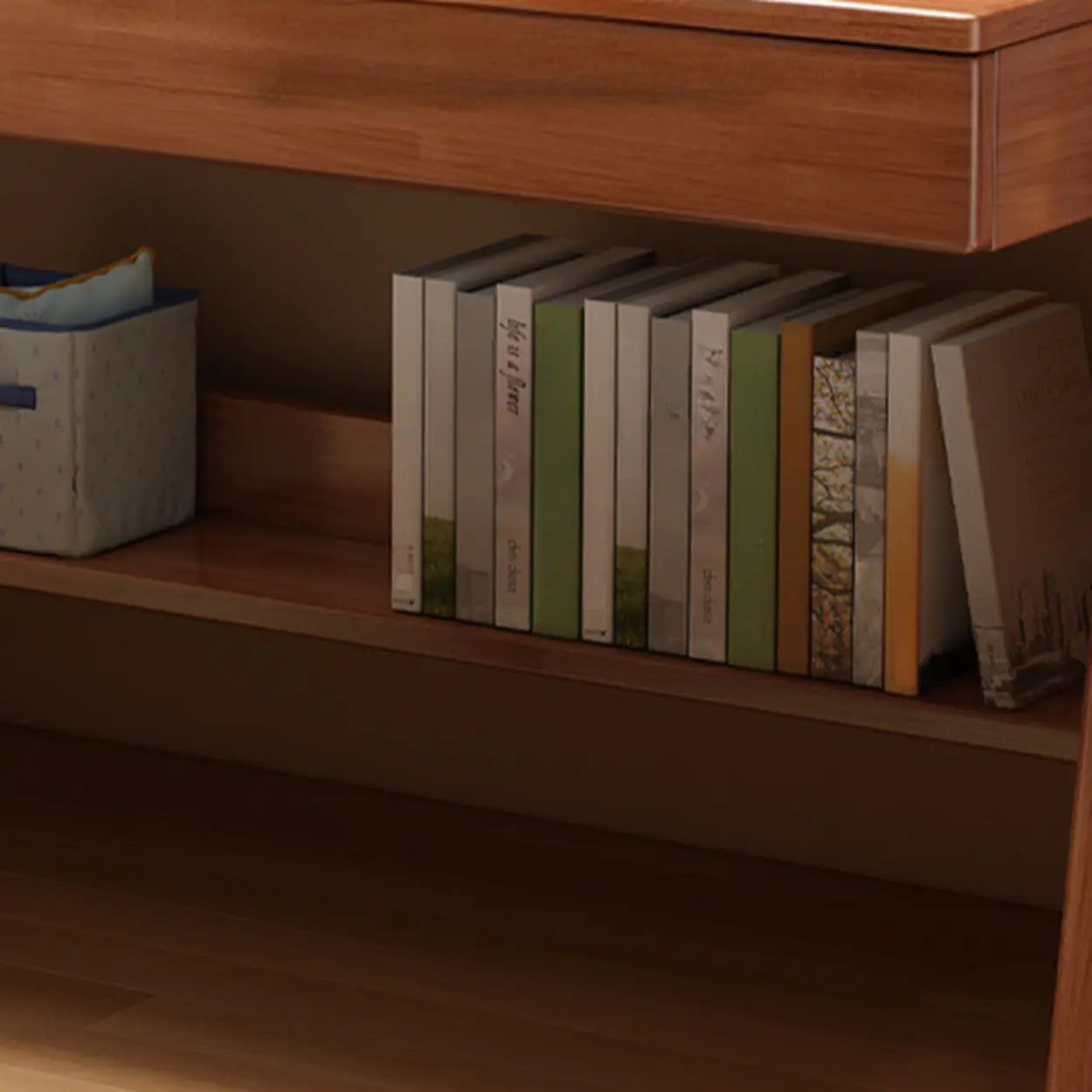 Made from quality wood, this children's desk is minimalistic and practical and designed exclusively for children. Its gentle lines and warm colors complement any home décor, giving a warm and motivating study area for children. It has various storage drawers and open shelves, offering ample storage space for books, stationery, and memorabilia, keeping the study area clean and well-organized.