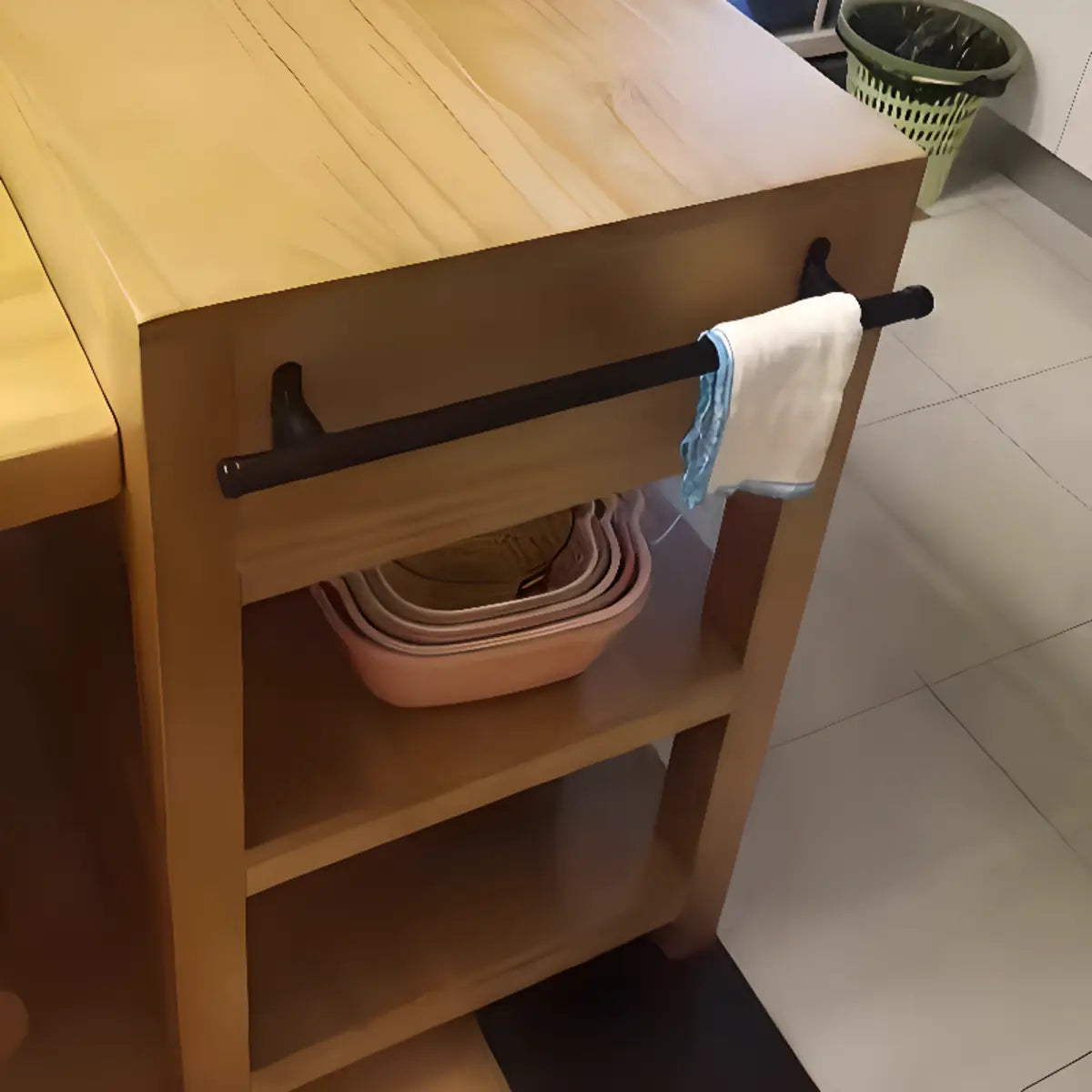 Open shelf design for easy storage and quick access to commonly used items.