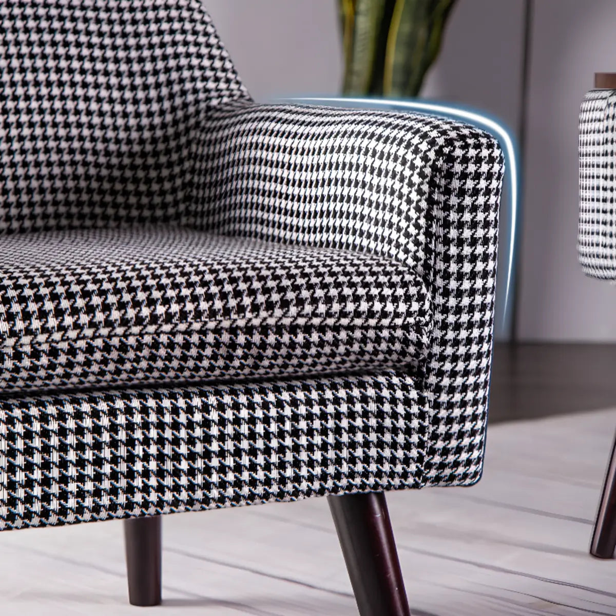 Yellow Cotton Linen Fixed Back Arm Chair with Slipcover - Blue Houndstooth / Cotton and Linen is backordered and will ship as soon as it is back in stock.
