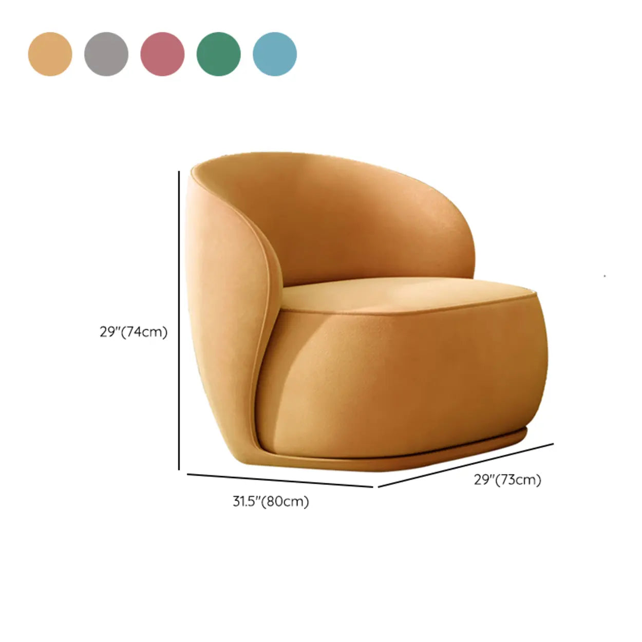 This unique curved velvet armchair is the perfect combination of comfort and fashion, an ideal addition to your interior home. The warm yellow hue adds vitality while adding a touch of modern art to your room.
